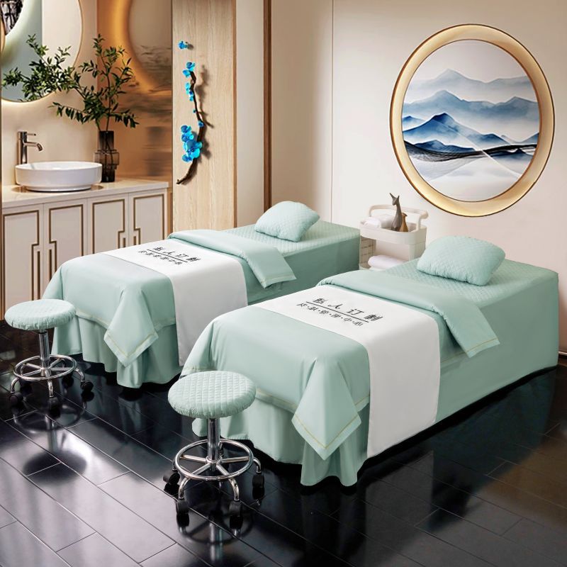 퓨어 코튼 뷰티 침대보 4 피스 세트 하이 엔드 라이트 럭셔리 뷰티 살롱 마사지 요법면 침대보 샴푸 침대 세트 도매스토어 가기