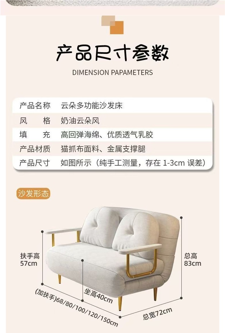 접이식 소파 침대 더블 작은 아파트 크림 스타일 소파 다기능 간단한 클라우드 소파 거실 게으른 소파