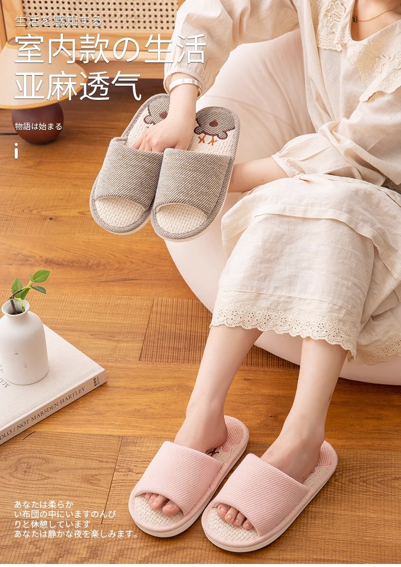 린넨 슬리퍼 여성용 봄과 가을 실내 홈 커플의 미끄럼 방지 조용한 사계절 코튼 리넨 슬리퍼 남성 여행 홈스테이스토어 가기
