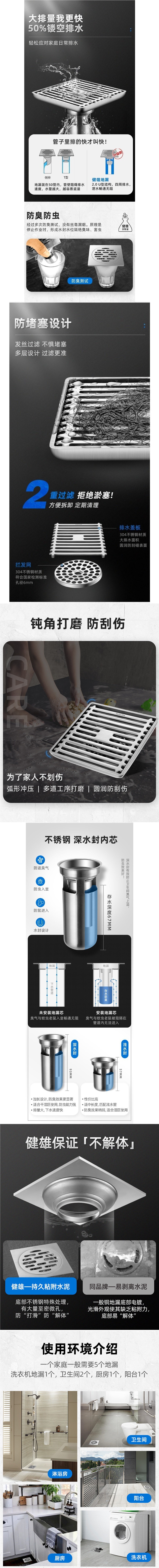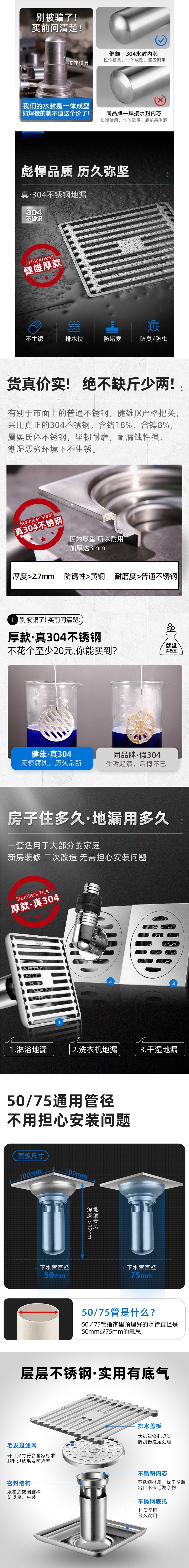 • 진정한 304 스테인레스 스틸 - 깊은 물 밀봉 - 습식 및 건식 바닥 배수구