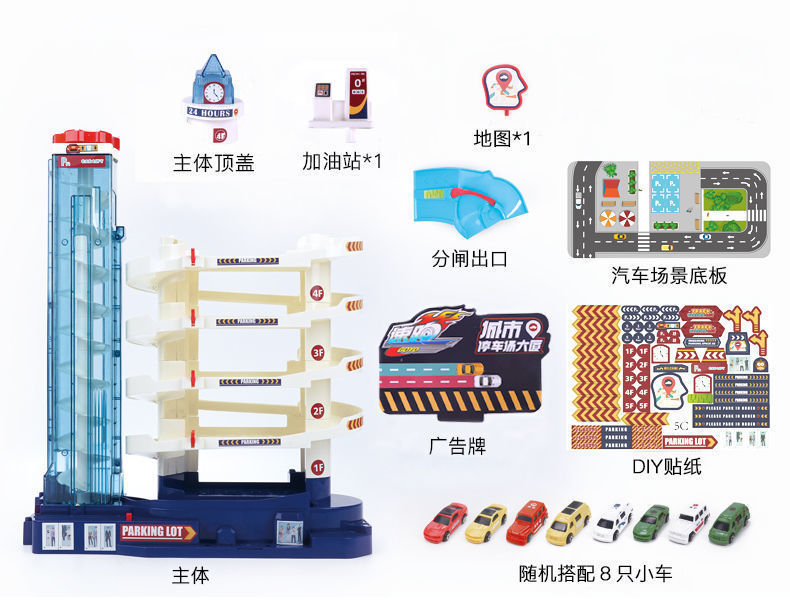 • [조명에는 배터리가 포함되어 있습니다] 4F 주차 빌딩 - 차량 22대 포함