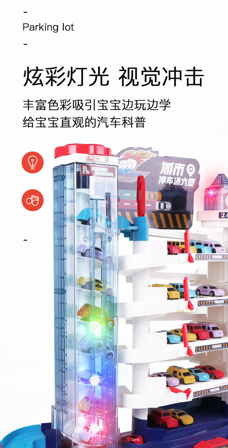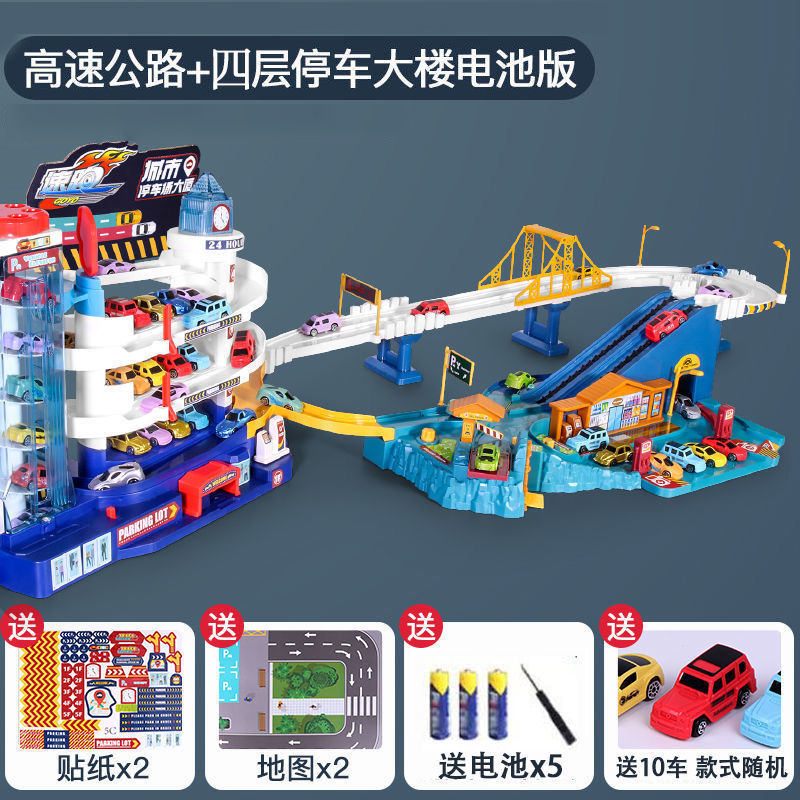 • [조명에는 배터리가 포함되어 있습니다] 4F 주차 빌딩 - 차량 6대 포함