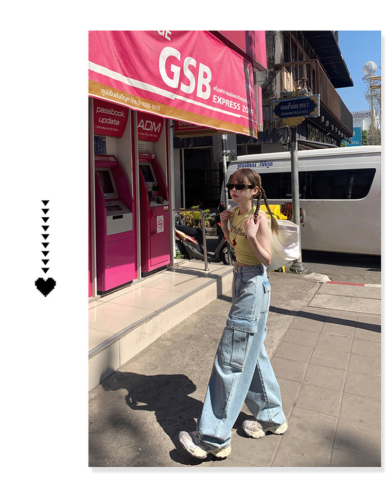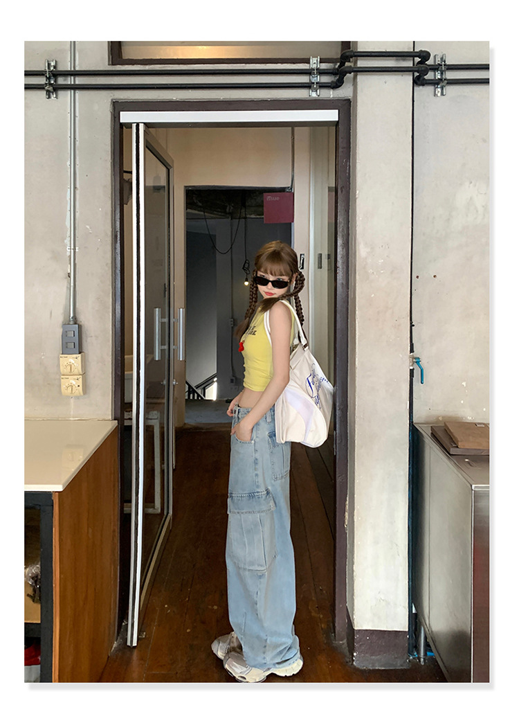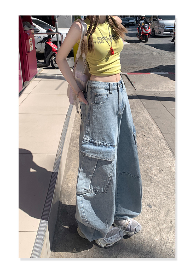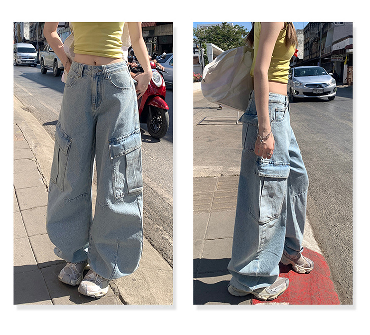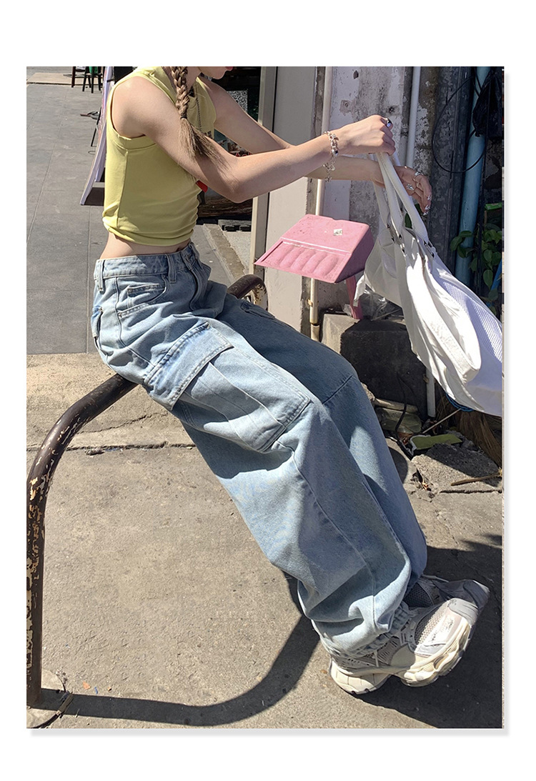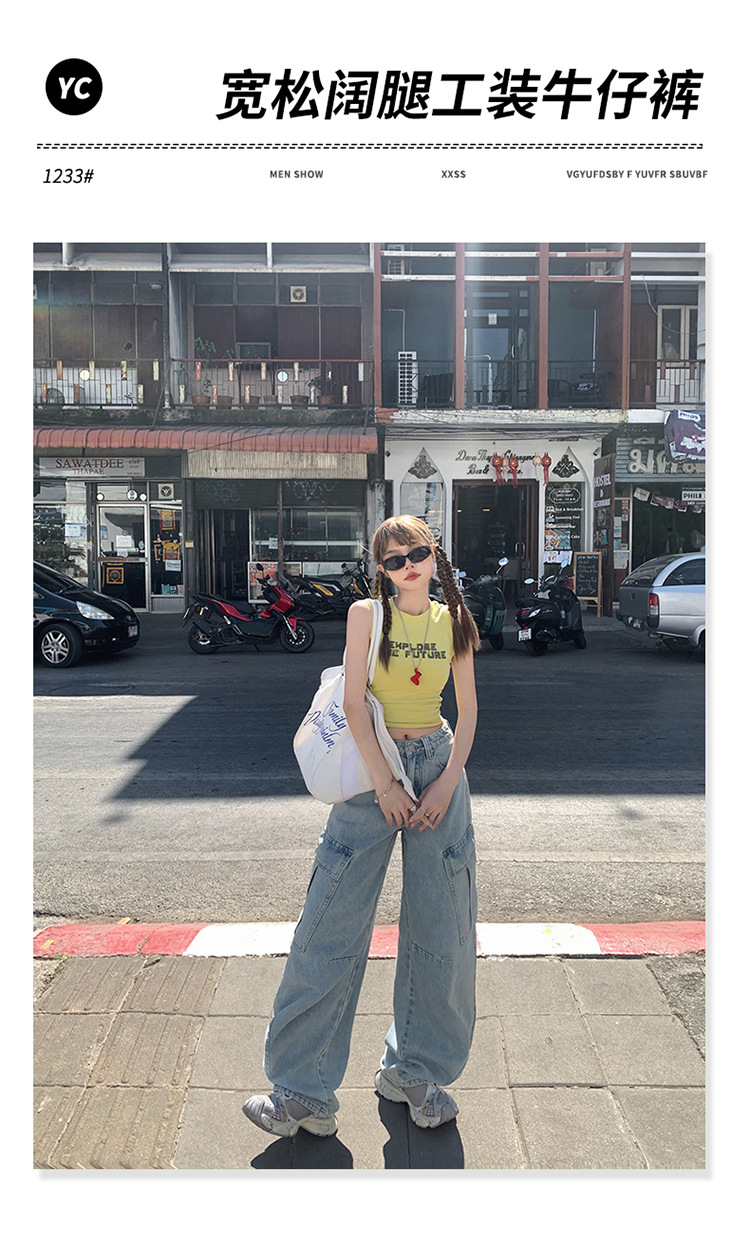 YC & American Retro High Street Loose Wide Leg Pocket Overalls 올 매치 봄 및 여름 스트레이트 청바지 여성용 뉴스토어 가기