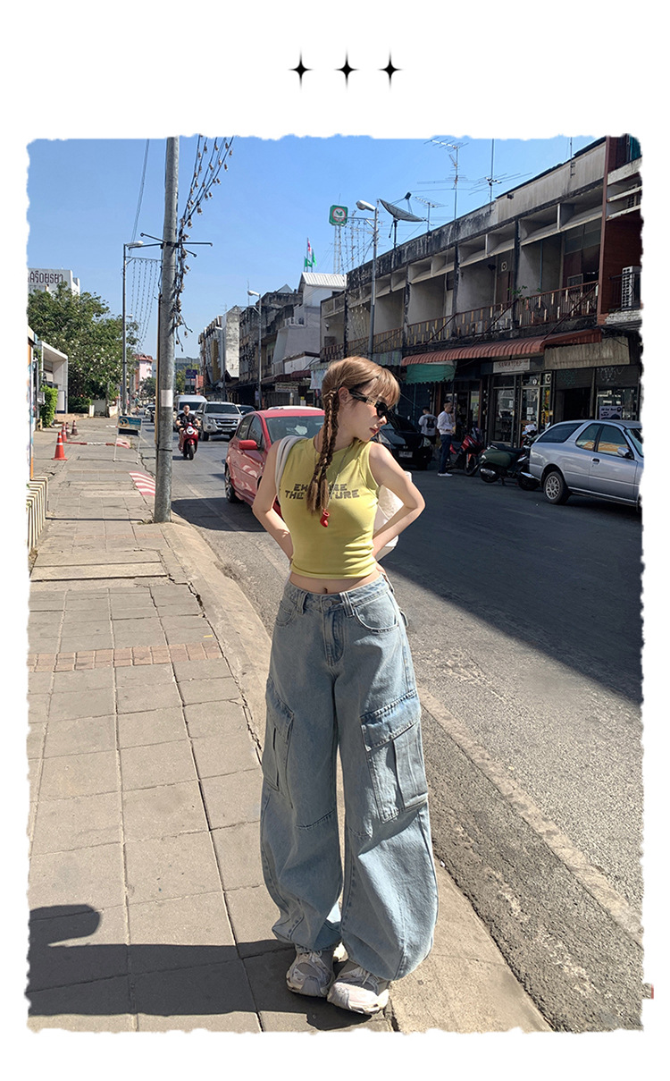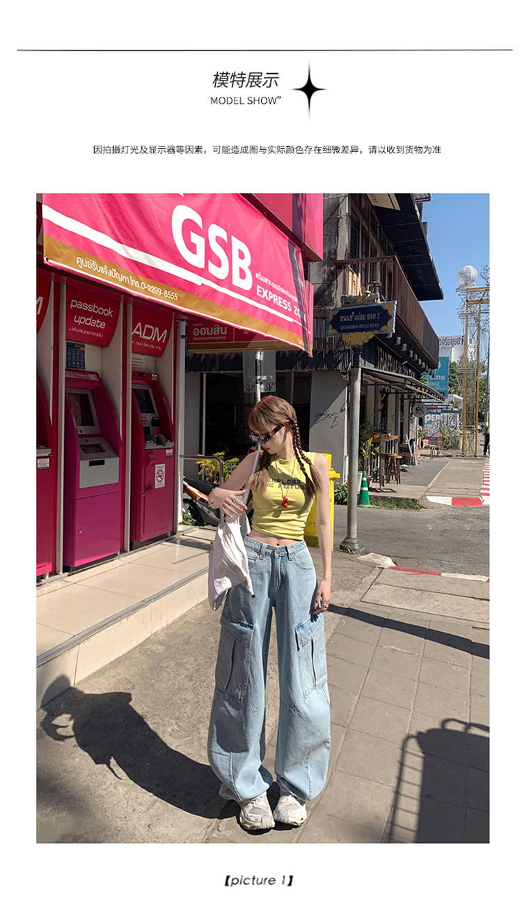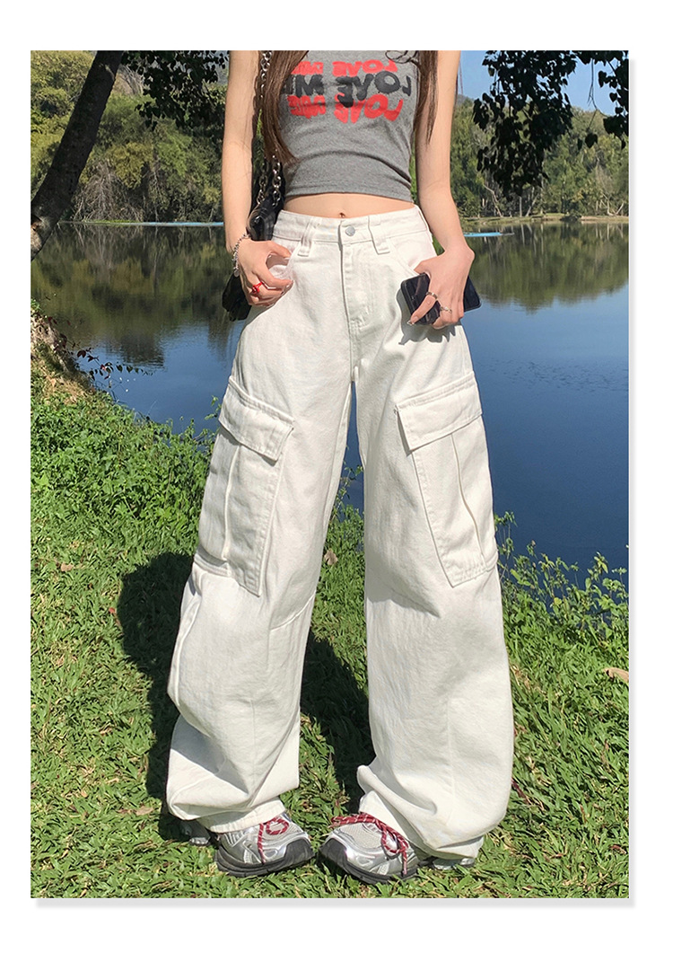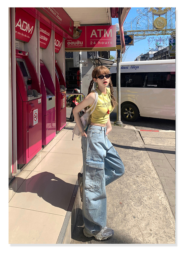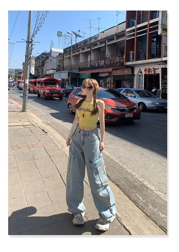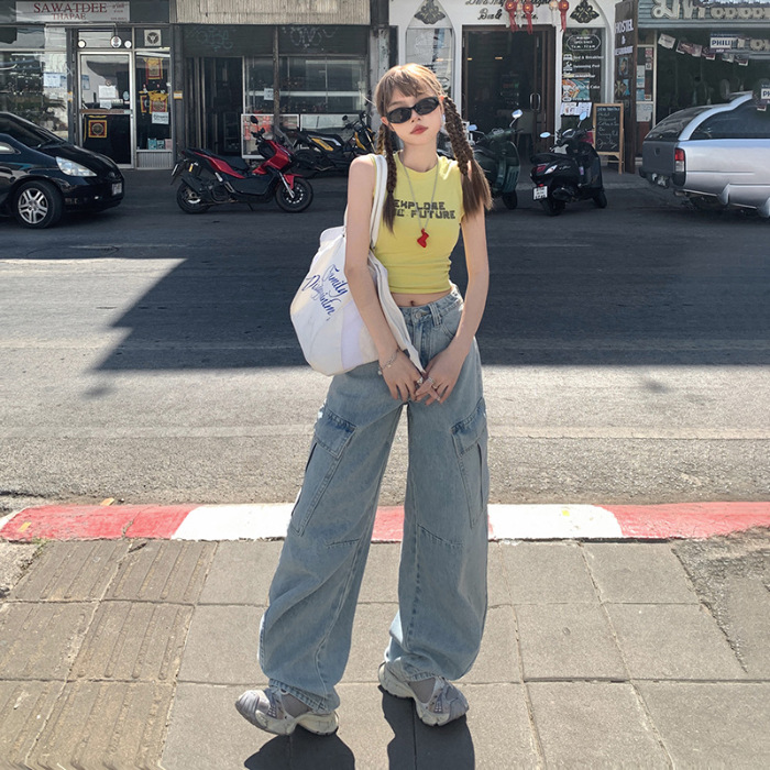 YC & American Retro High Street Loose Wide Leg Pocket Overalls 올 매치 봄 및 여름 스트레이트 청바지 여성용 뉴스토어 가기
