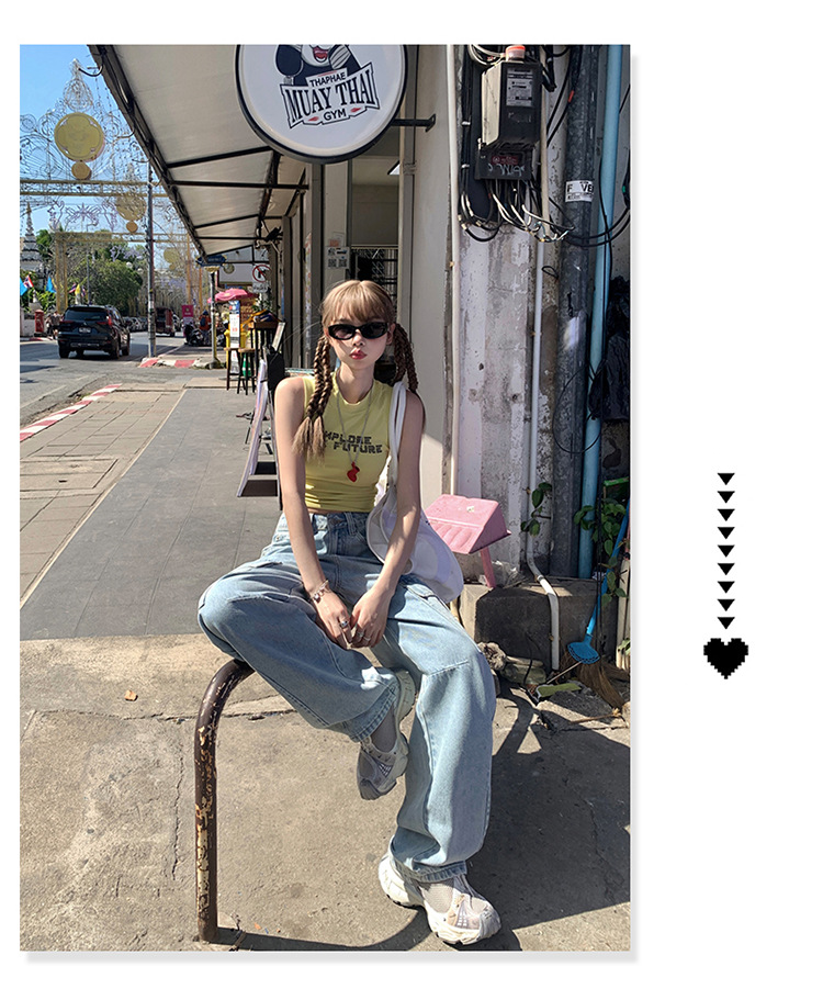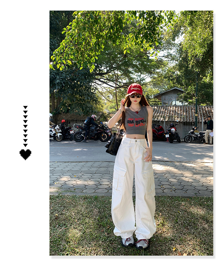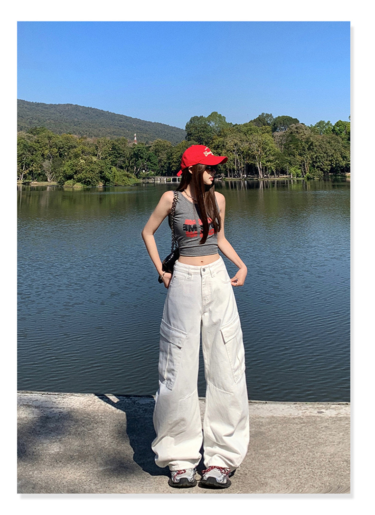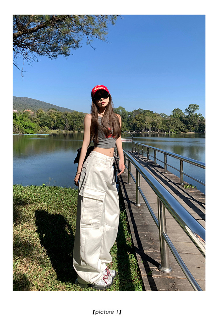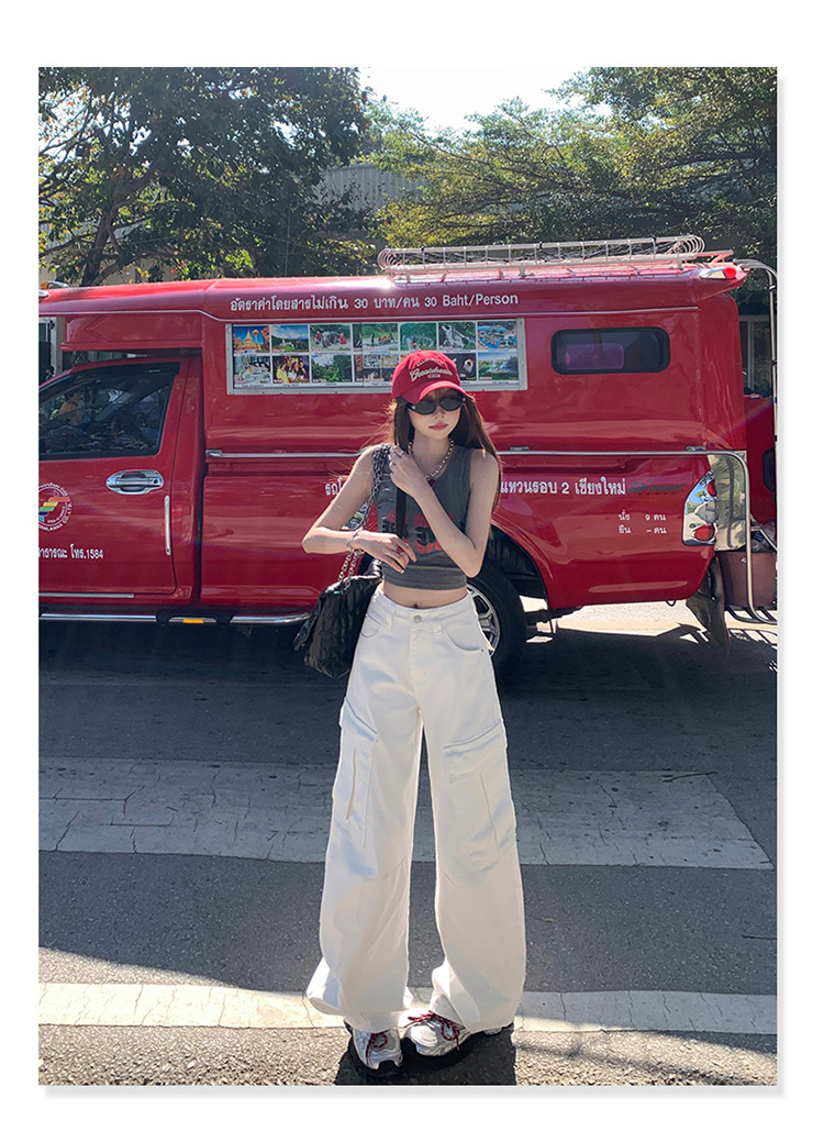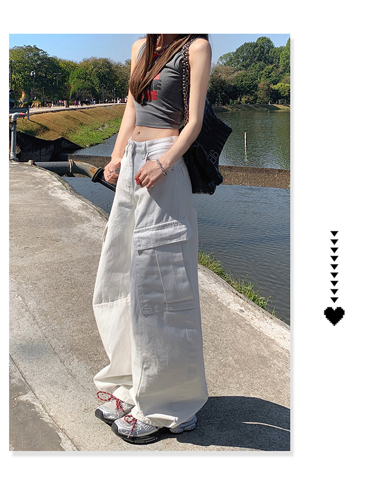 YC & American Retro High Street Loose Wide Leg Pocket Overalls 올 매치 봄 및 여름 스트레이트 청바지 여성용 뉴스토어 가기