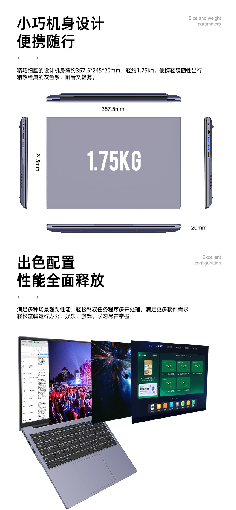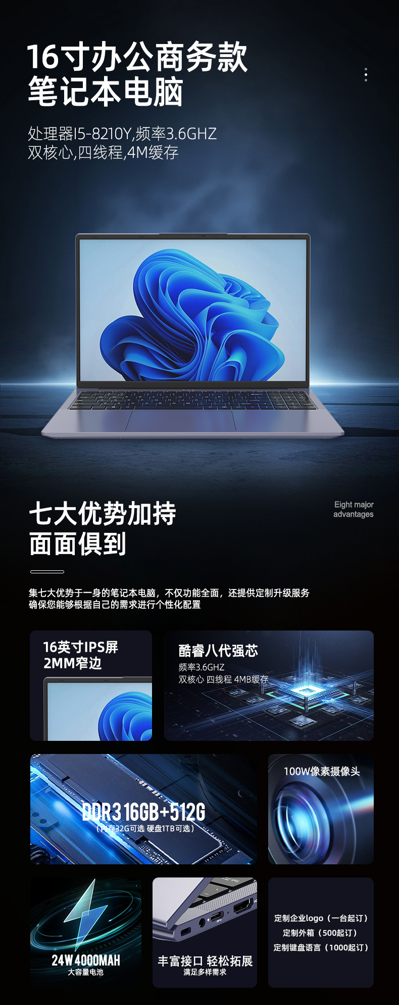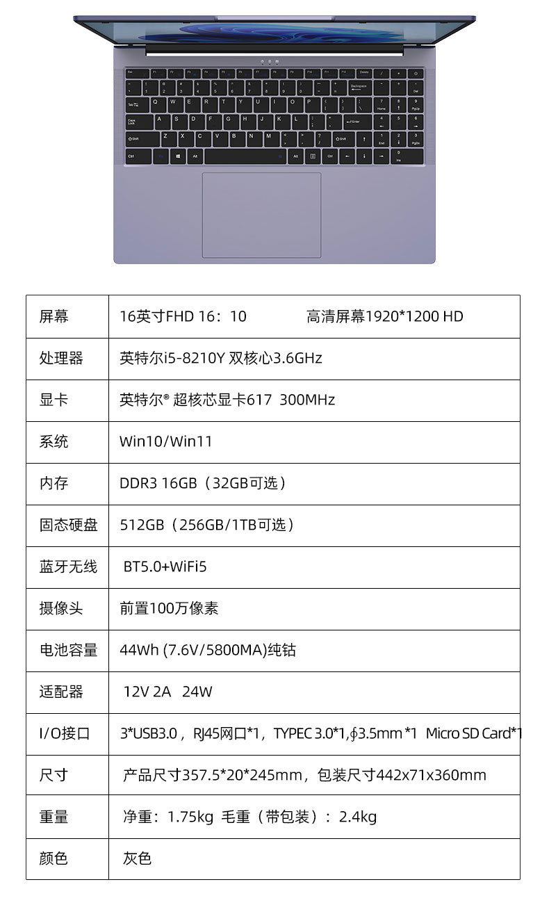 새로운 16inch 대형 화면 쿨러 i5-8210Y 얇고 가벼운 비즈니스 사무용 휴대용 노트북 컴퓨터 신제품