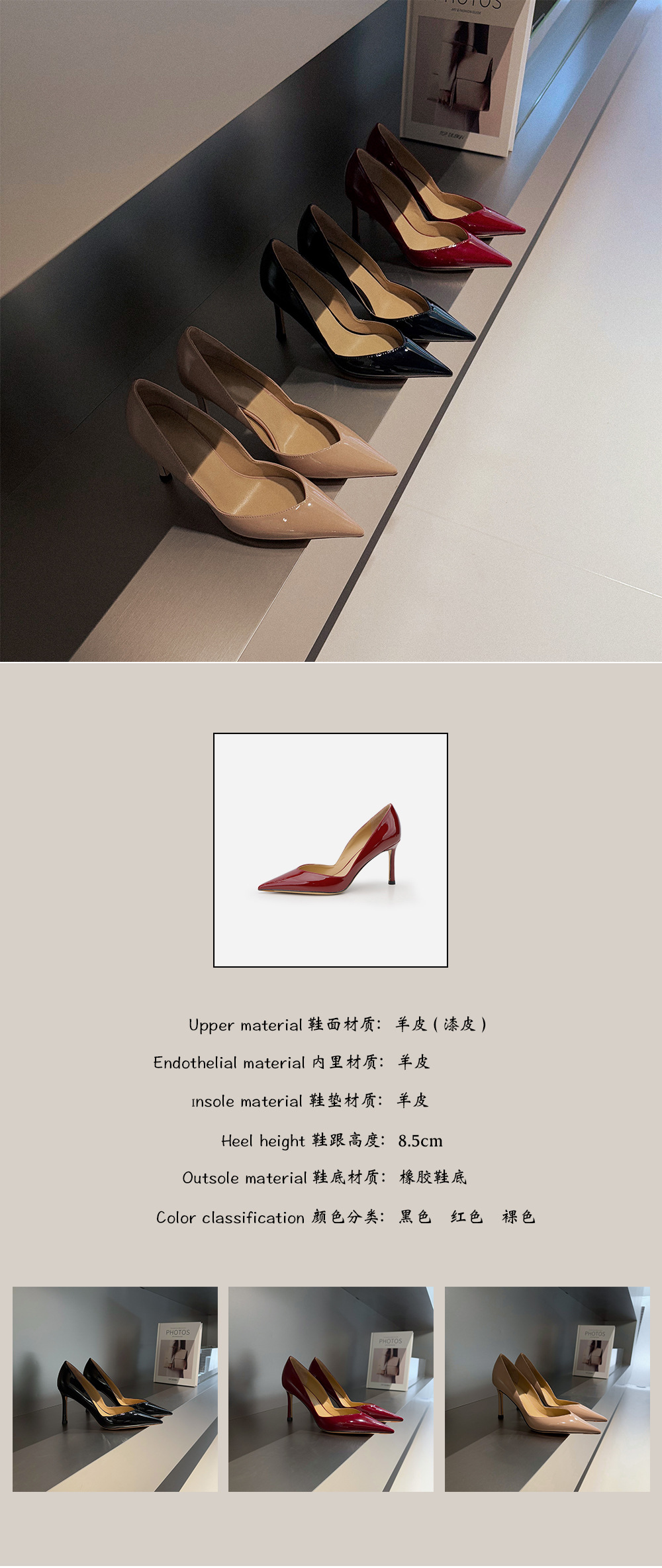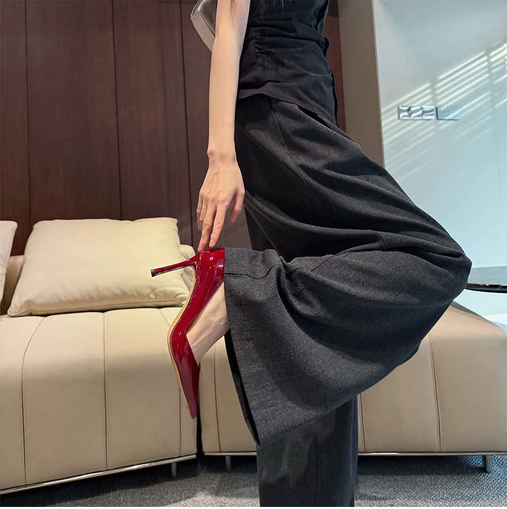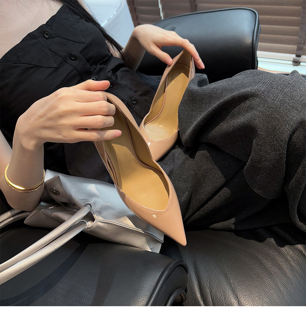 프랑스 사교계 ~ 양가죽 8.5cm 얇은 발 뒤꿈치 신발 여성 봄 뾰족한 ol 아름다운 특허 가죽 뾰족한 누드 하이힐스토어 가기