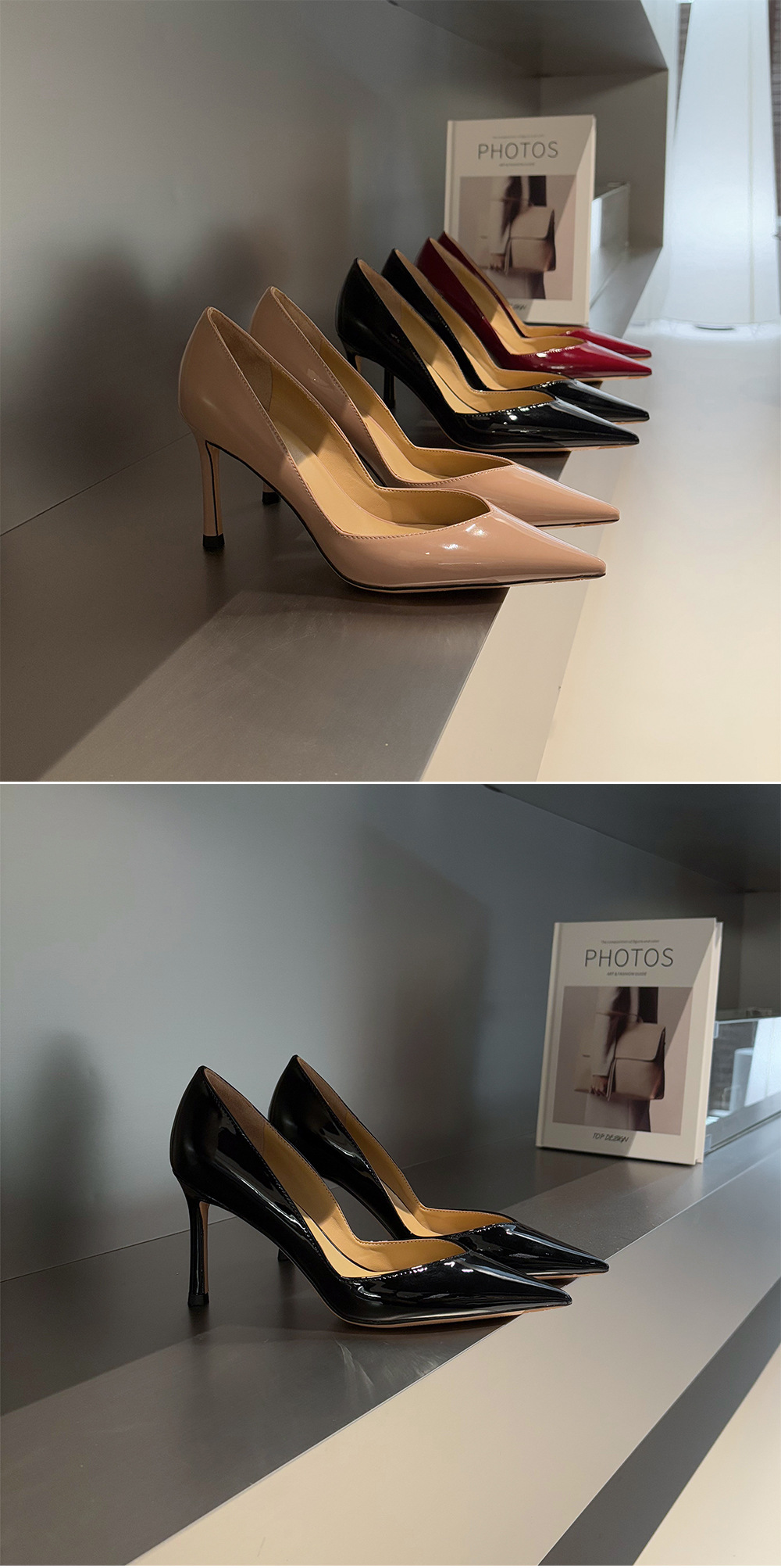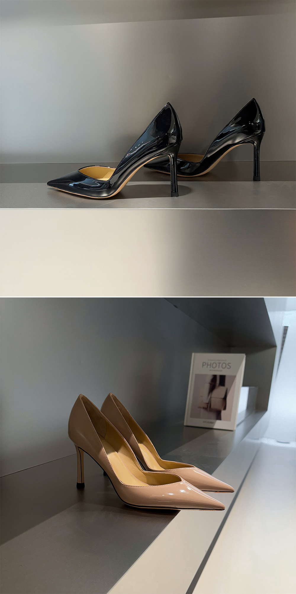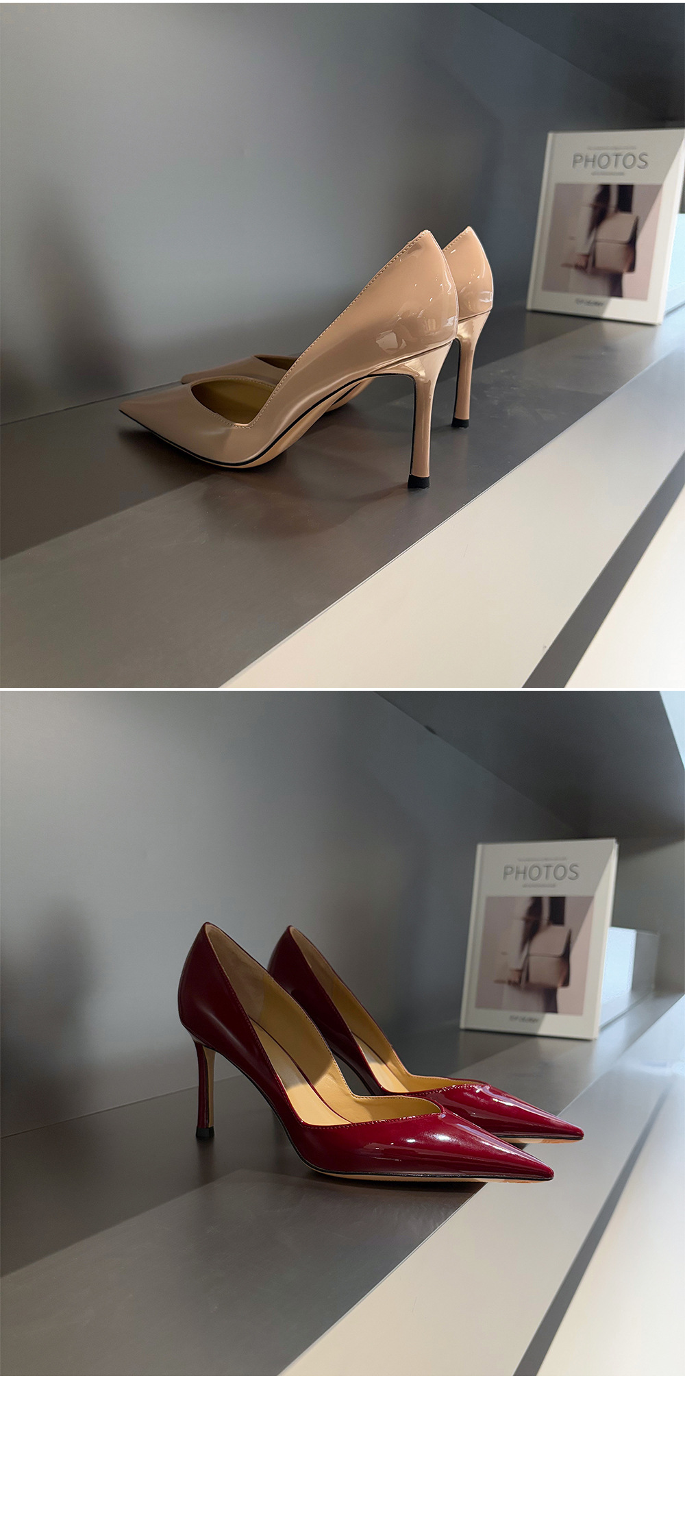 프랑스 사교계 ~ 양가죽 8.5cm 얇은 발 뒤꿈치 신발 여성 봄 뾰족한 ol 아름다운 특허 가죽 뾰족한 누드 하이힐스토어 가기