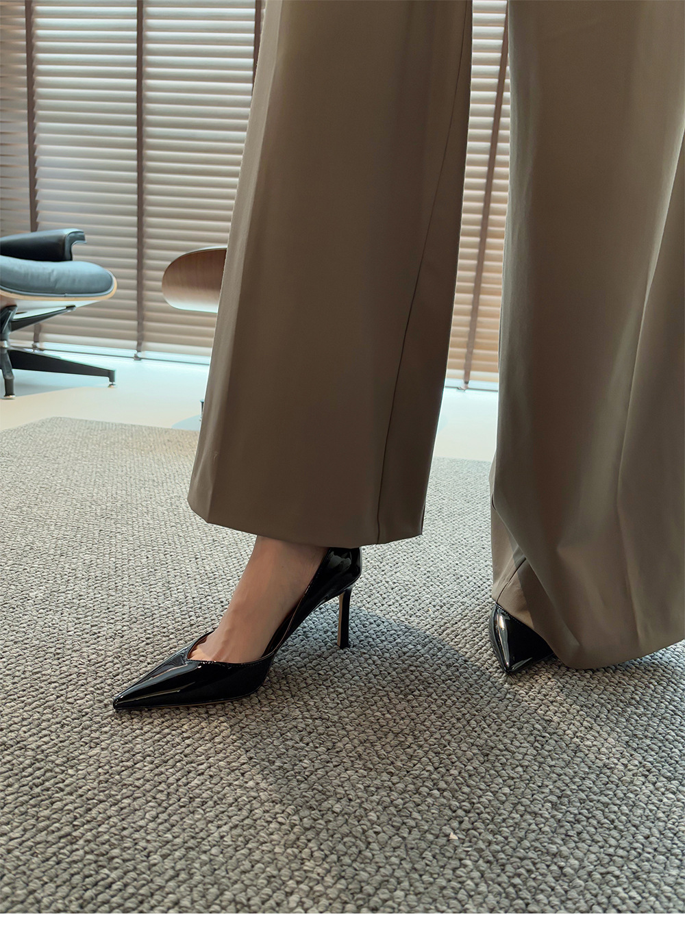 프랑스 사교계 ~ 양가죽 8.5cm 얇은 발 뒤꿈치 신발 여성 봄 뾰족한 ol 아름다운 특허 가죽 뾰족한 누드 하이힐
