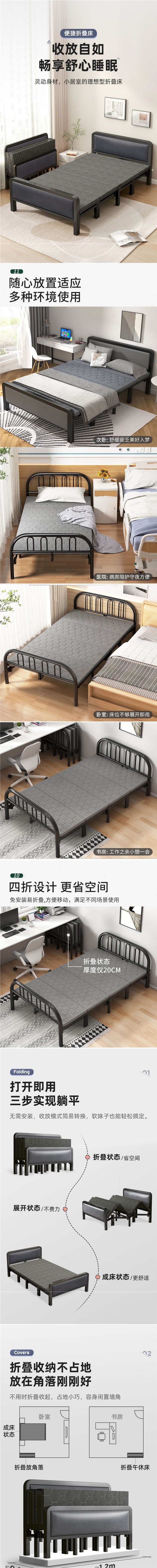 신장 도매 접이식 침대 싱글 침대 1 미터 2 가정용 간단한 공용 룸 점심 휴식 철 침대 하드 보드 침대 캠프 침대