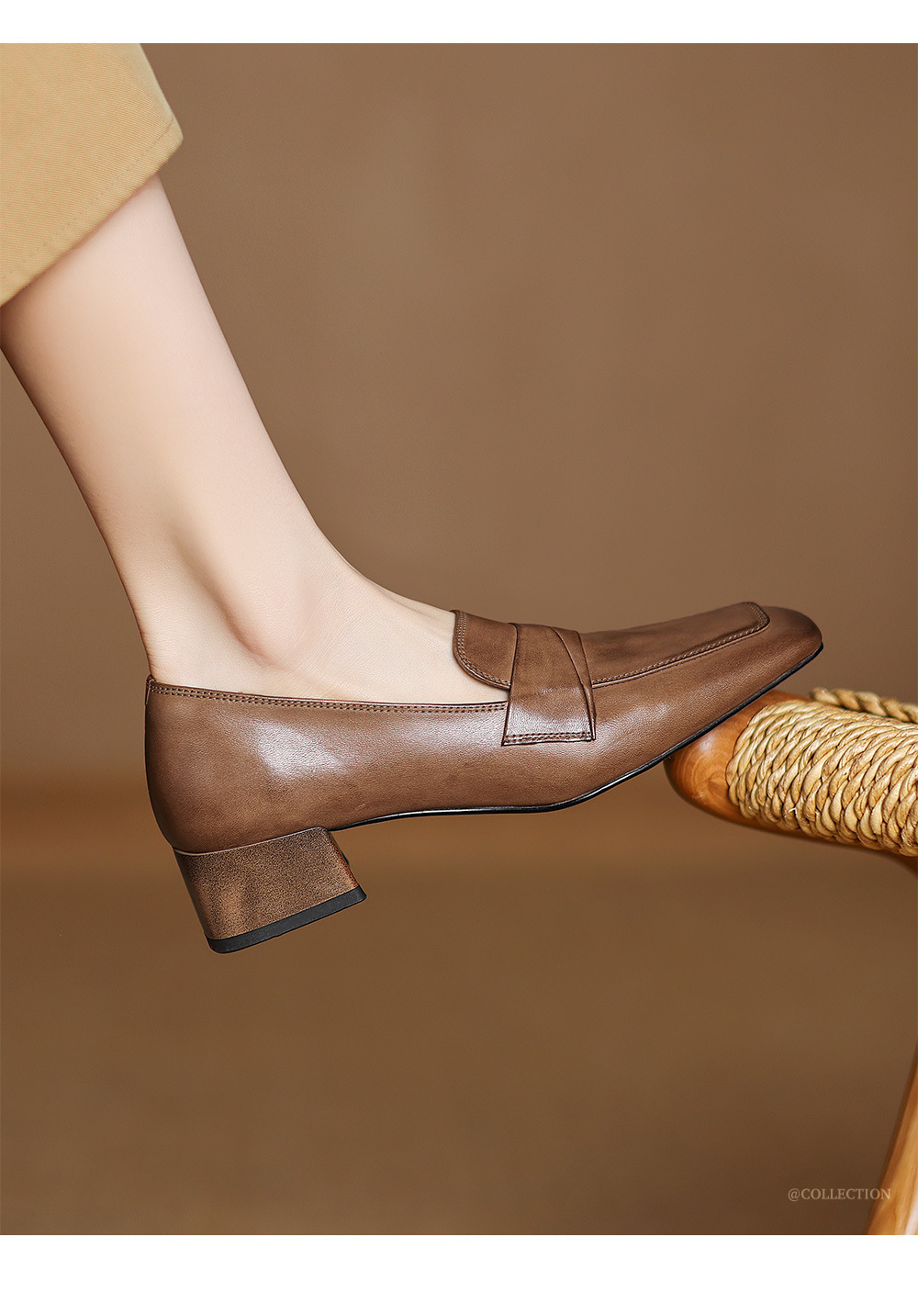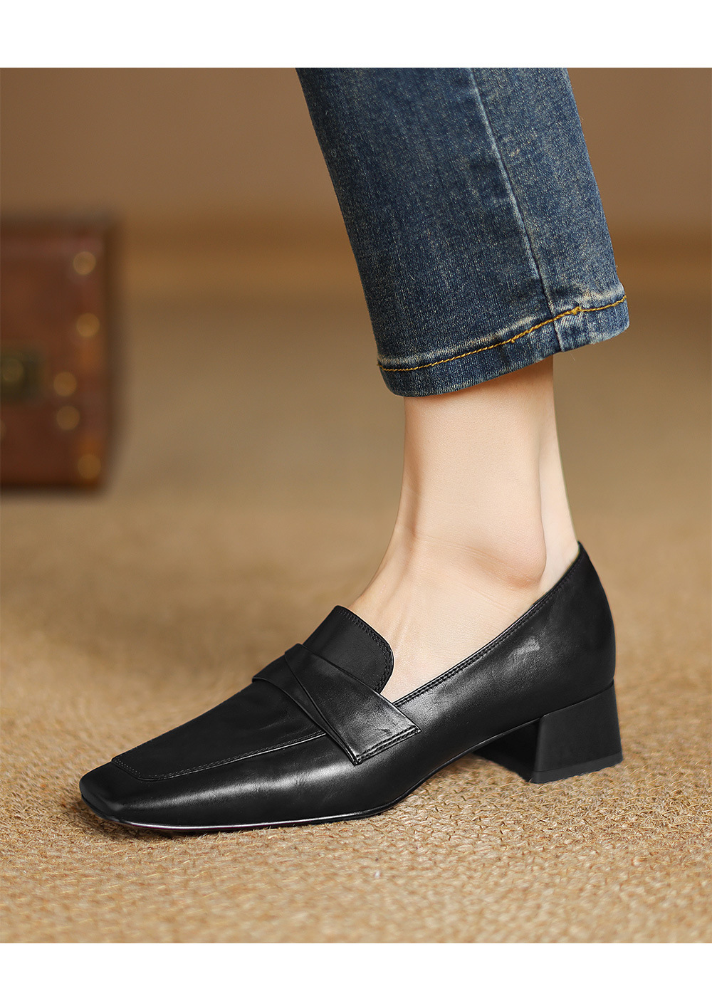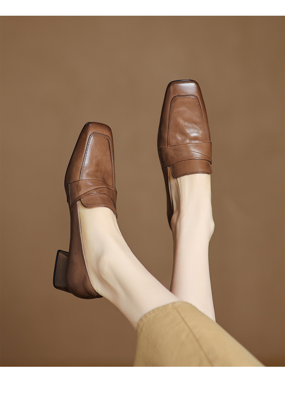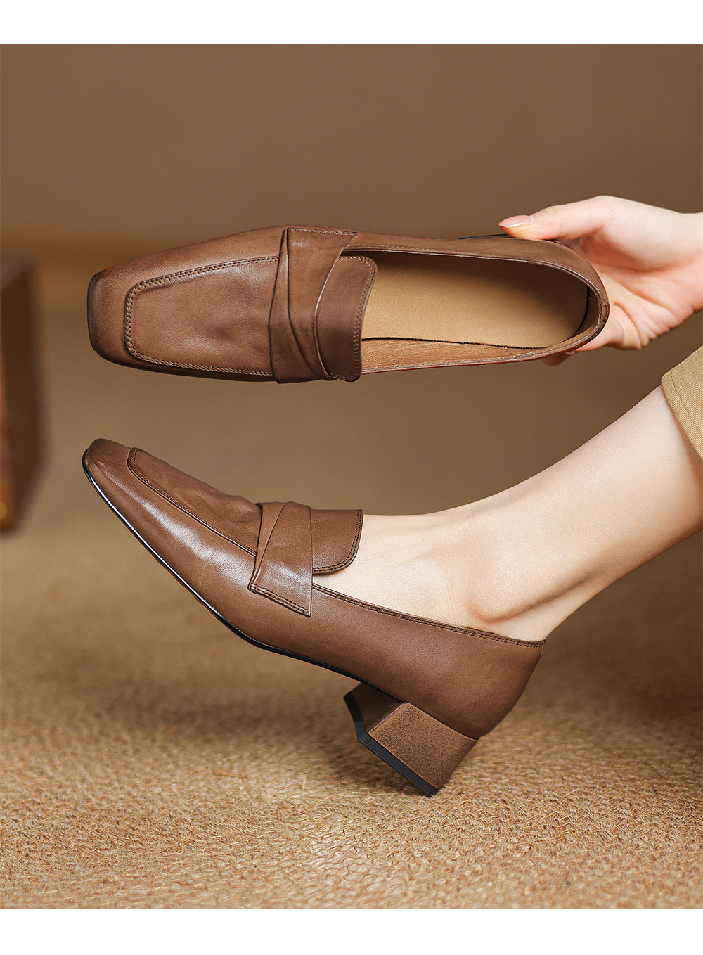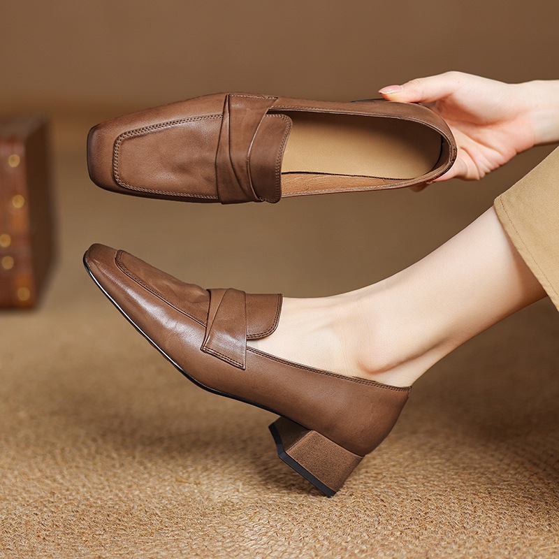 2025 봄 새 광장 머리 청키 힐 하이 힐 다리 신발 편안한 단색 카우보이 여성 신발 블랙 다크 브라운스토어 가기