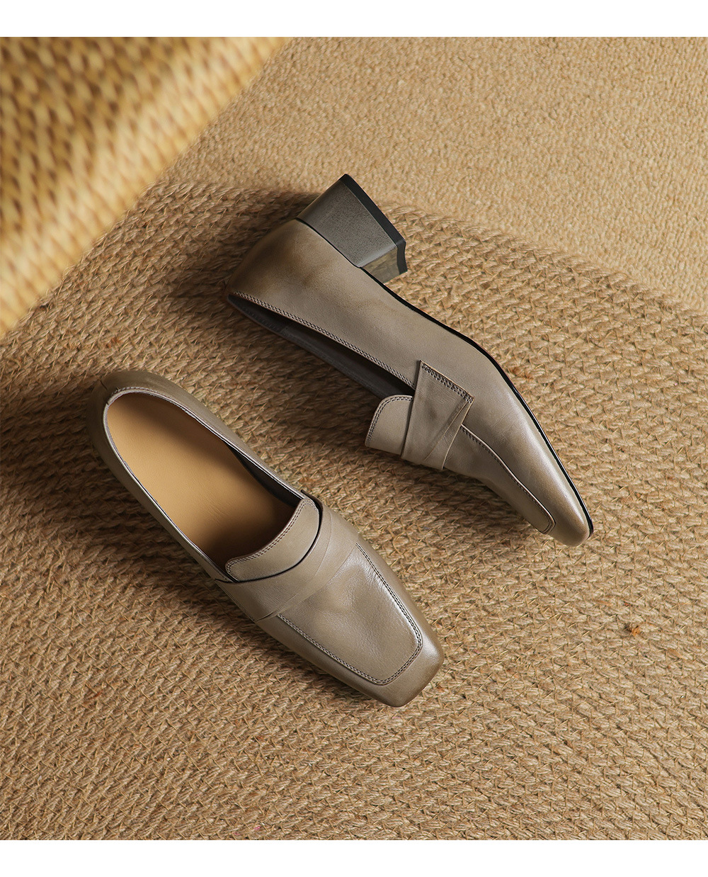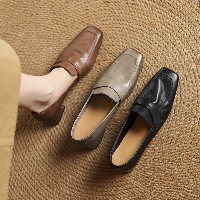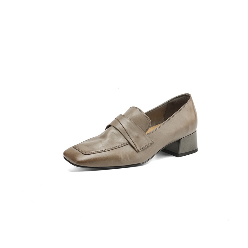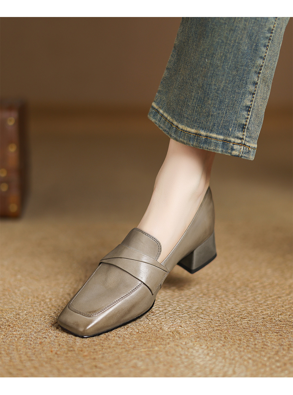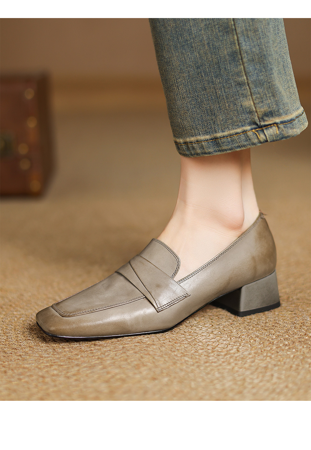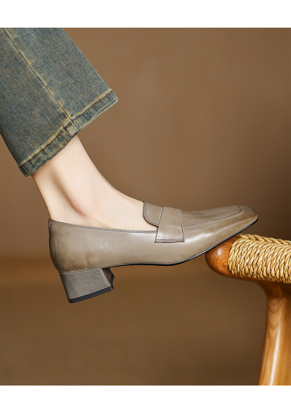 2025 봄 새 광장 머리 청키 힐 하이 힐 다리 신발 편안한 단색 카우보이 여성 신발 블랙 다크 브라운스토어 가기
