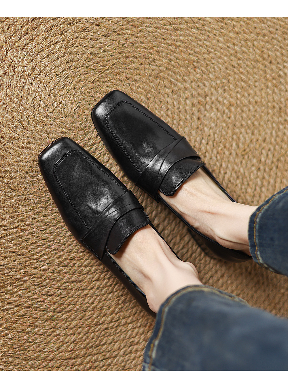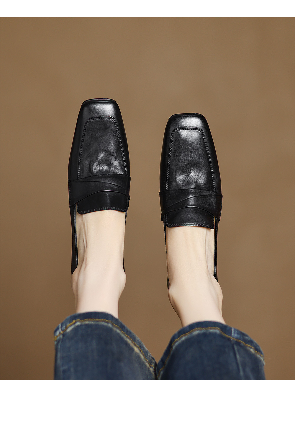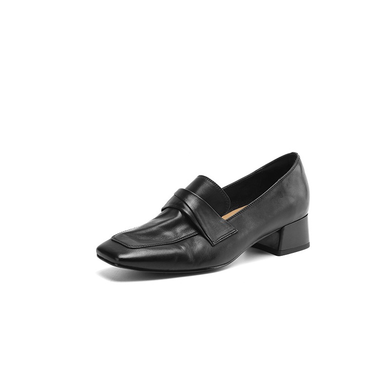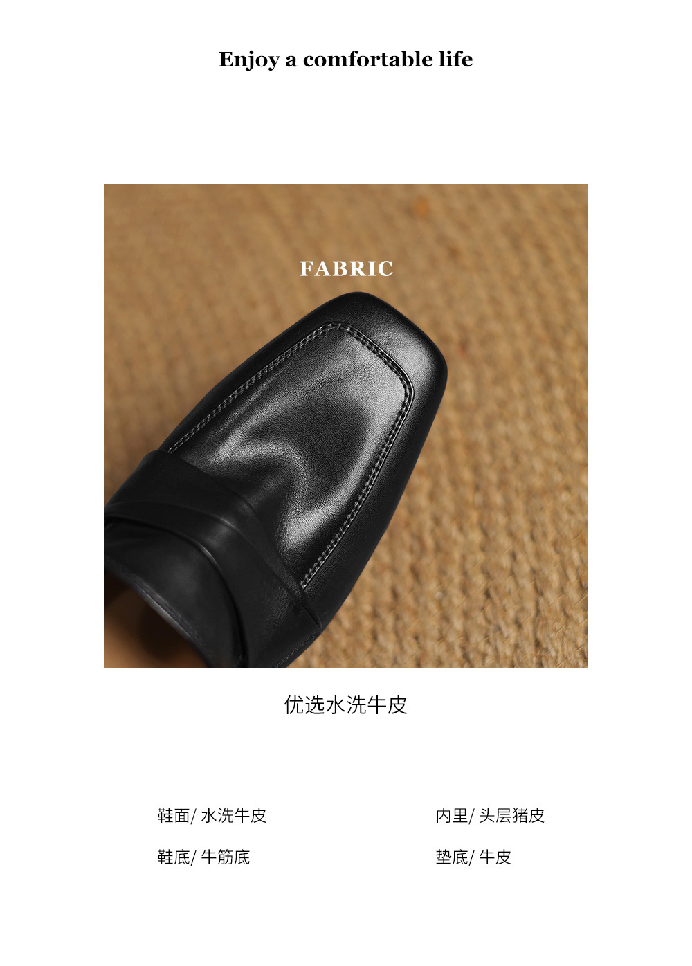 2025 봄 새 광장 머리 청키 힐 하이 힐 다리 신발 편안한 단색 카우보이 여성 신발 블랙 다크 브라운