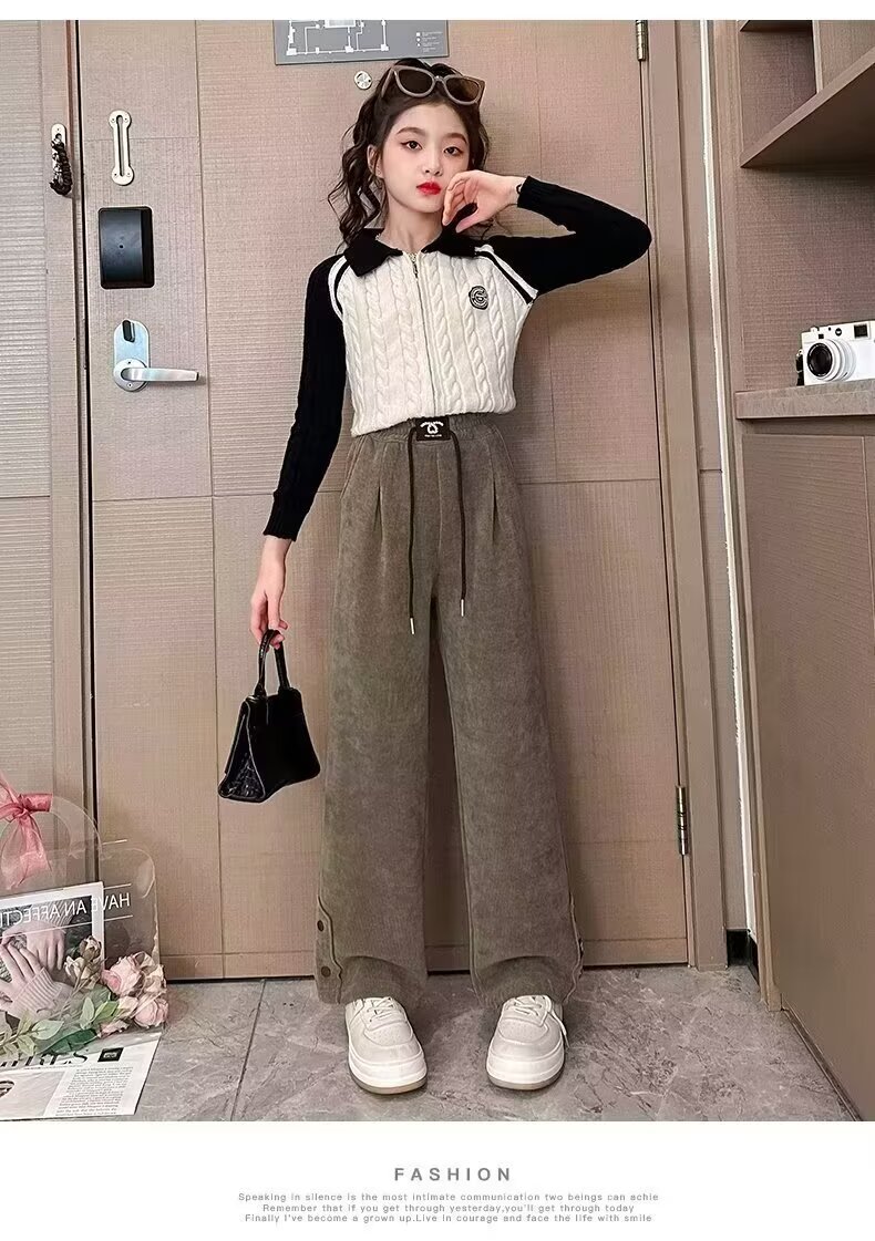 소녀 바지 봄 2025 새로운 유행 미드 빅 키즈 세련된 패션 코듀로이 스포츠 바지 캐주얼 와이드 레그
