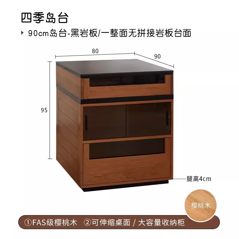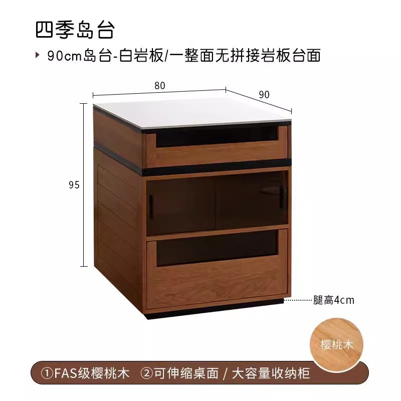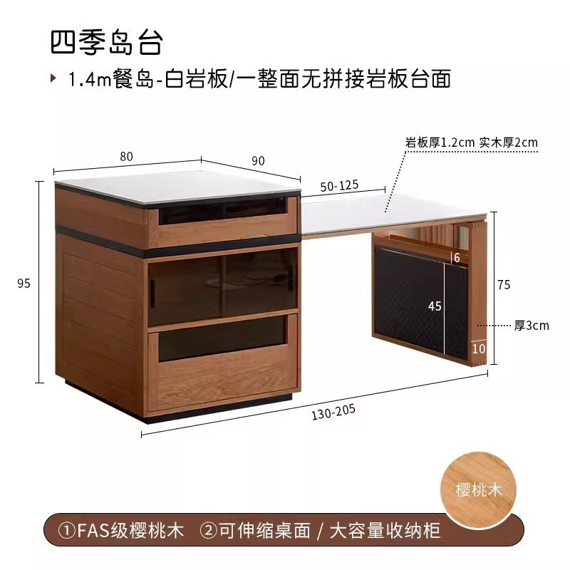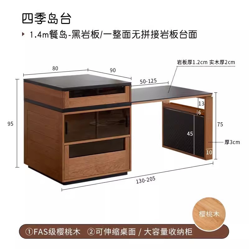北欧实木岛台岩板餐桌一体多功能家用小户型中岛拉伸柜餐边柜吧台