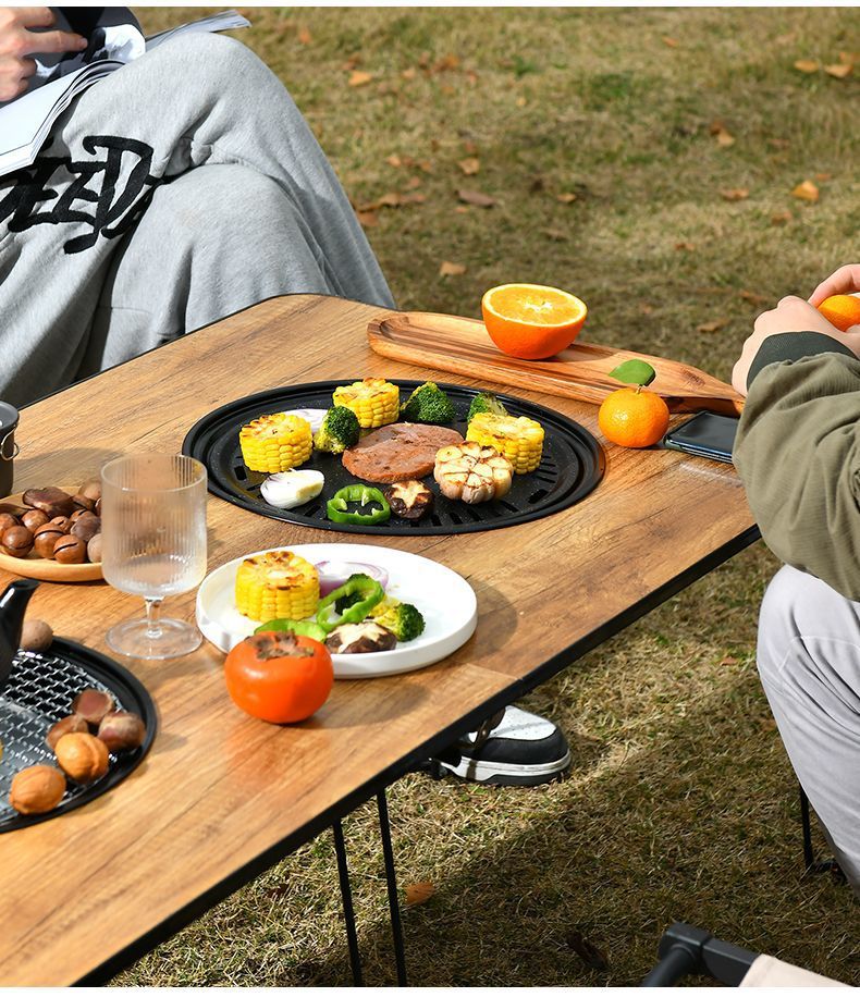 왼쪽 두 배로 탄소 굽기 테이블 접이식 캠핑 스톨 BBQ 전체 테이블 세트로 차 요리를위한 접이식 테이블스토어 가기