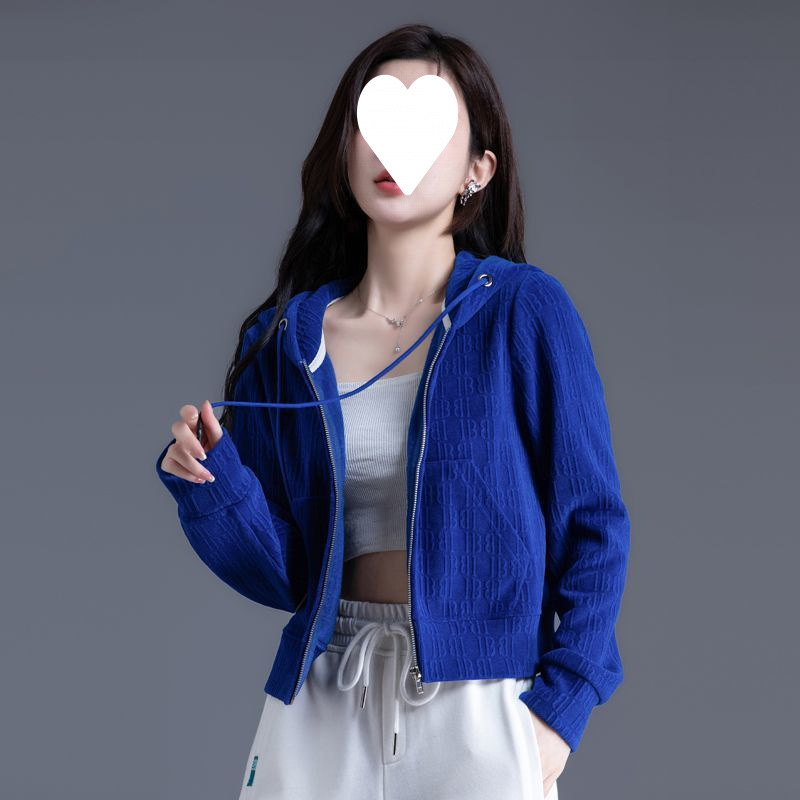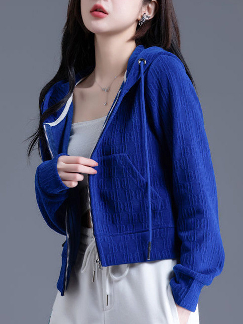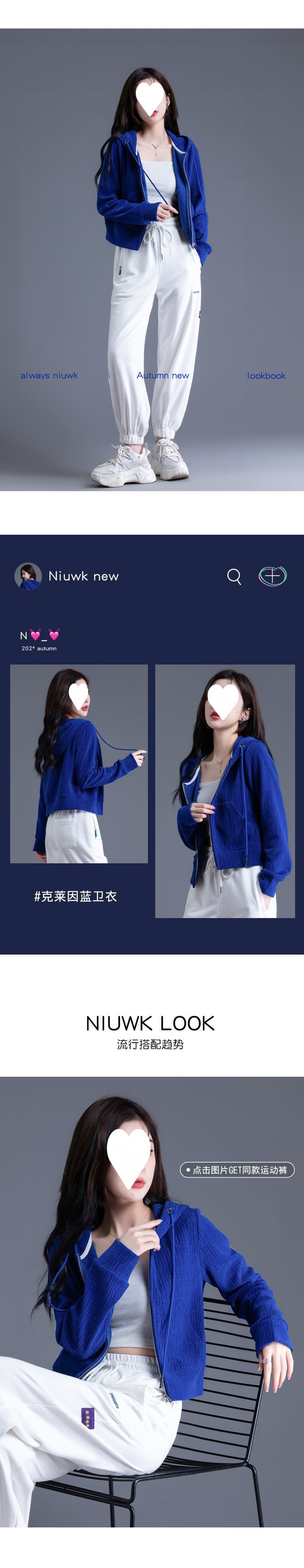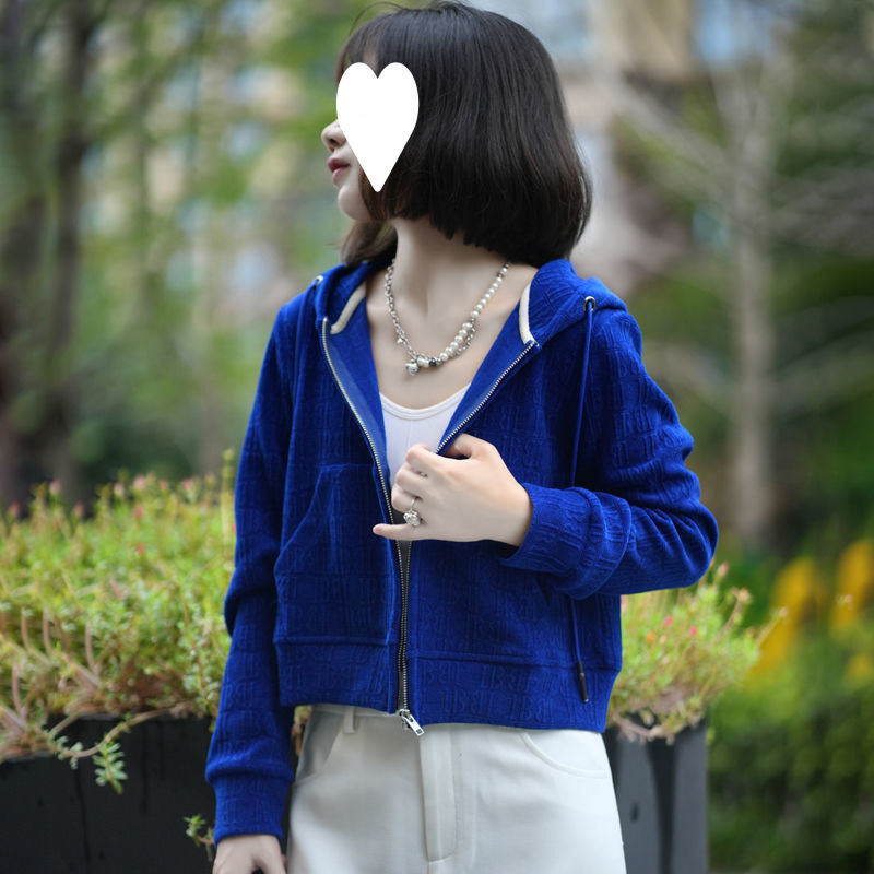 클라인 블루 스포츠 최고 짧은 조각 지퍼 카디건 후드 짧은 코트 캐주얼 여성의 가을스토어 가기