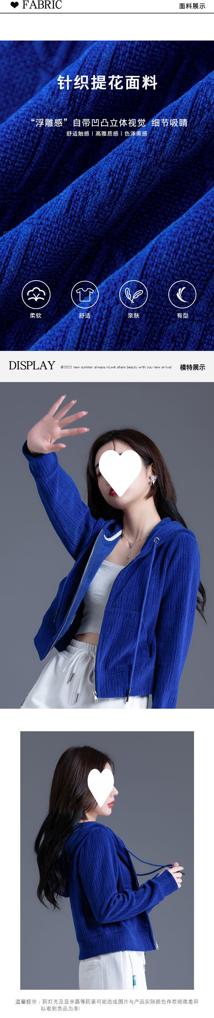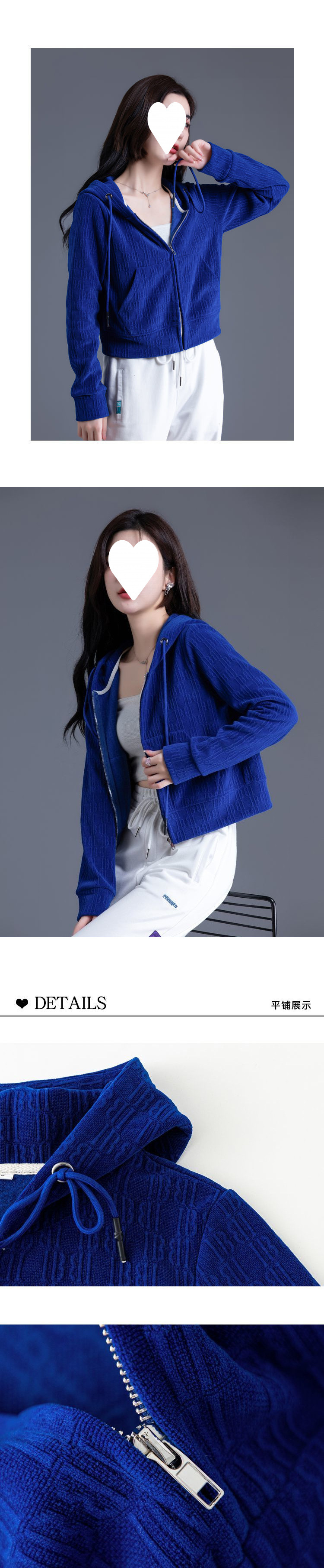 클라인 블루 스포츠 최고 짧은 조각 지퍼 카디건 후드 짧은 코트 캐주얼 여성의 가을