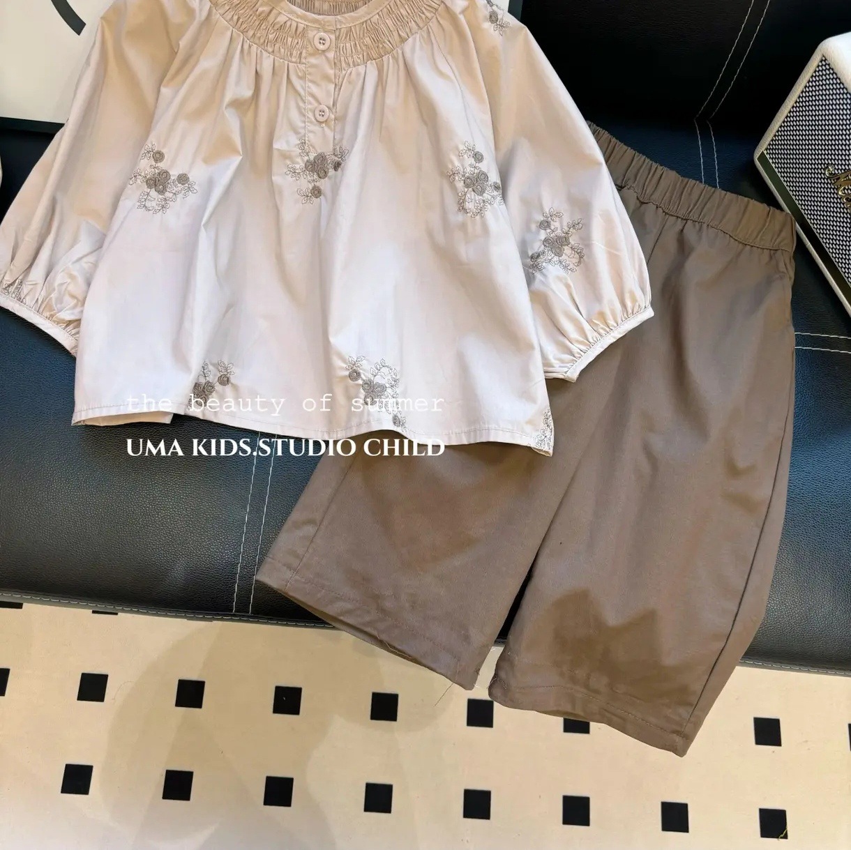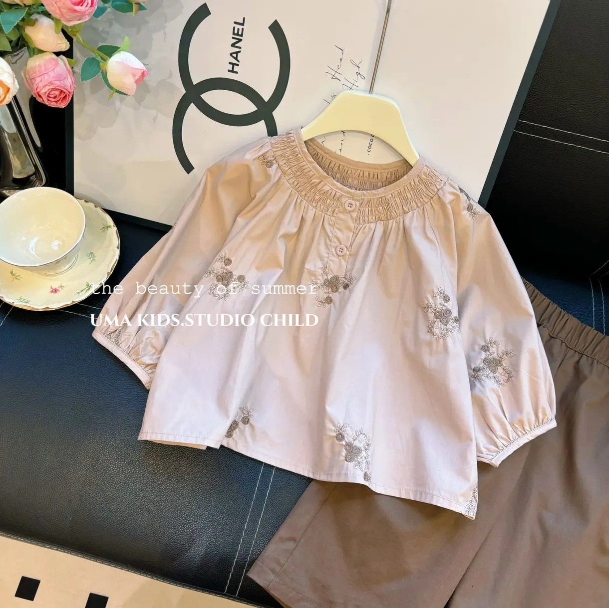 Tianxiaosi 봄과 가을 새로운 스타일 여자 한국 스타일 달콤한 자수 셔츠 탑 당근 캐주얼 유행 바지 투피스 양복