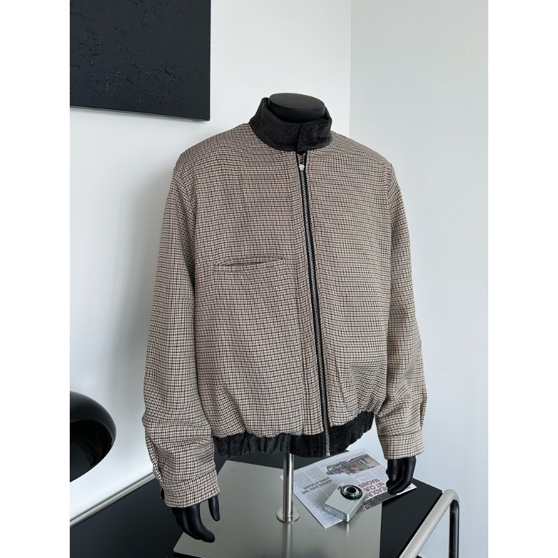 빈티지 Houndstooth 텍스처 재킷 남자의 짧은 수직 칼라 패션 브랜드 탑 봄과 가을 느슨한 미국 해링턴 재킷스토어 가기