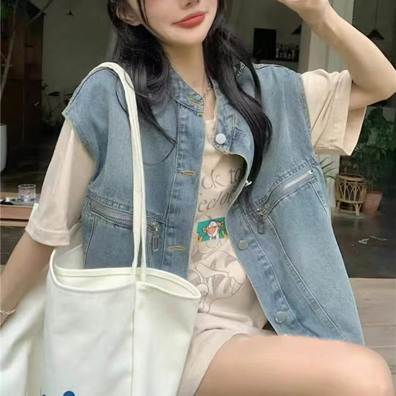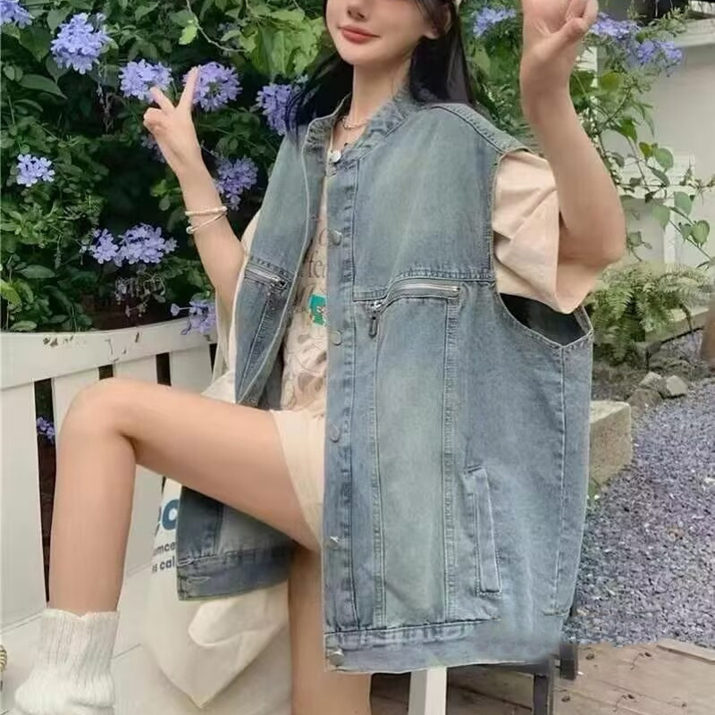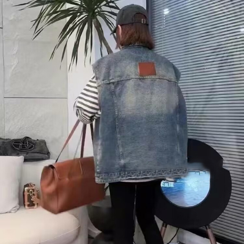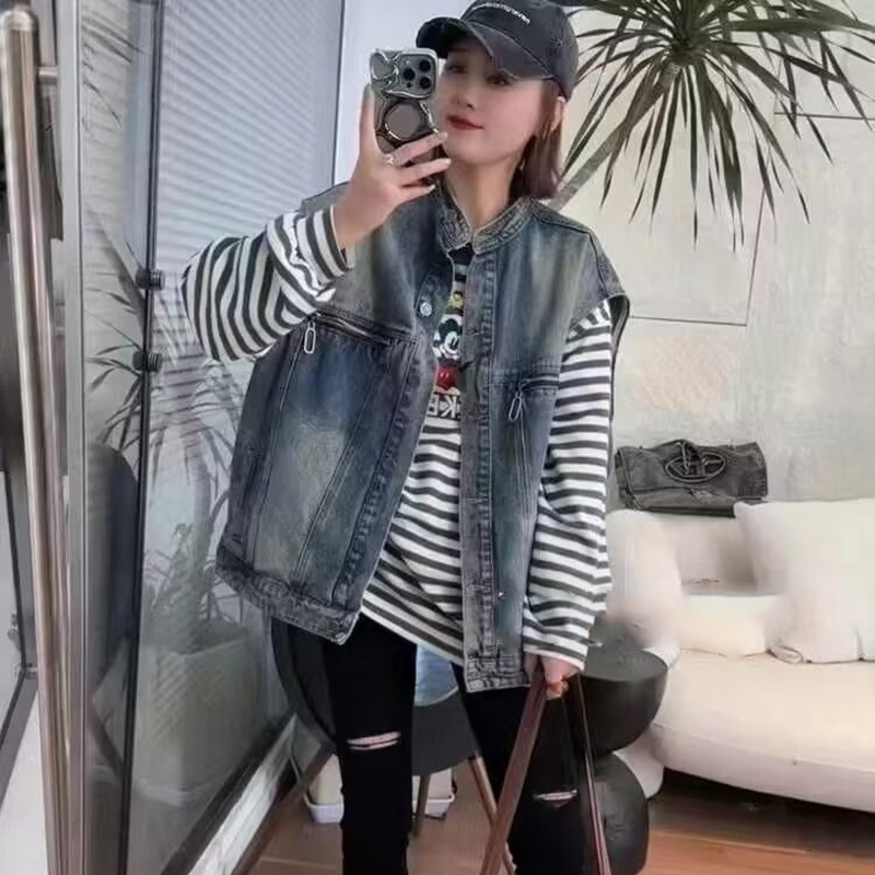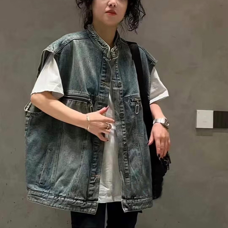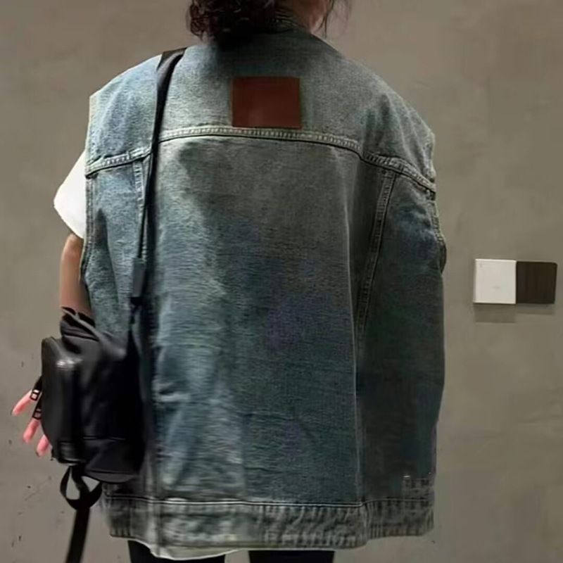 유럽 대형 에디션 패션 쌓인 민소매 데님 조끼 2025 봄과 가을 느슨한 캐주얼 조끼 조끼 조끼 재킷스토어 가기