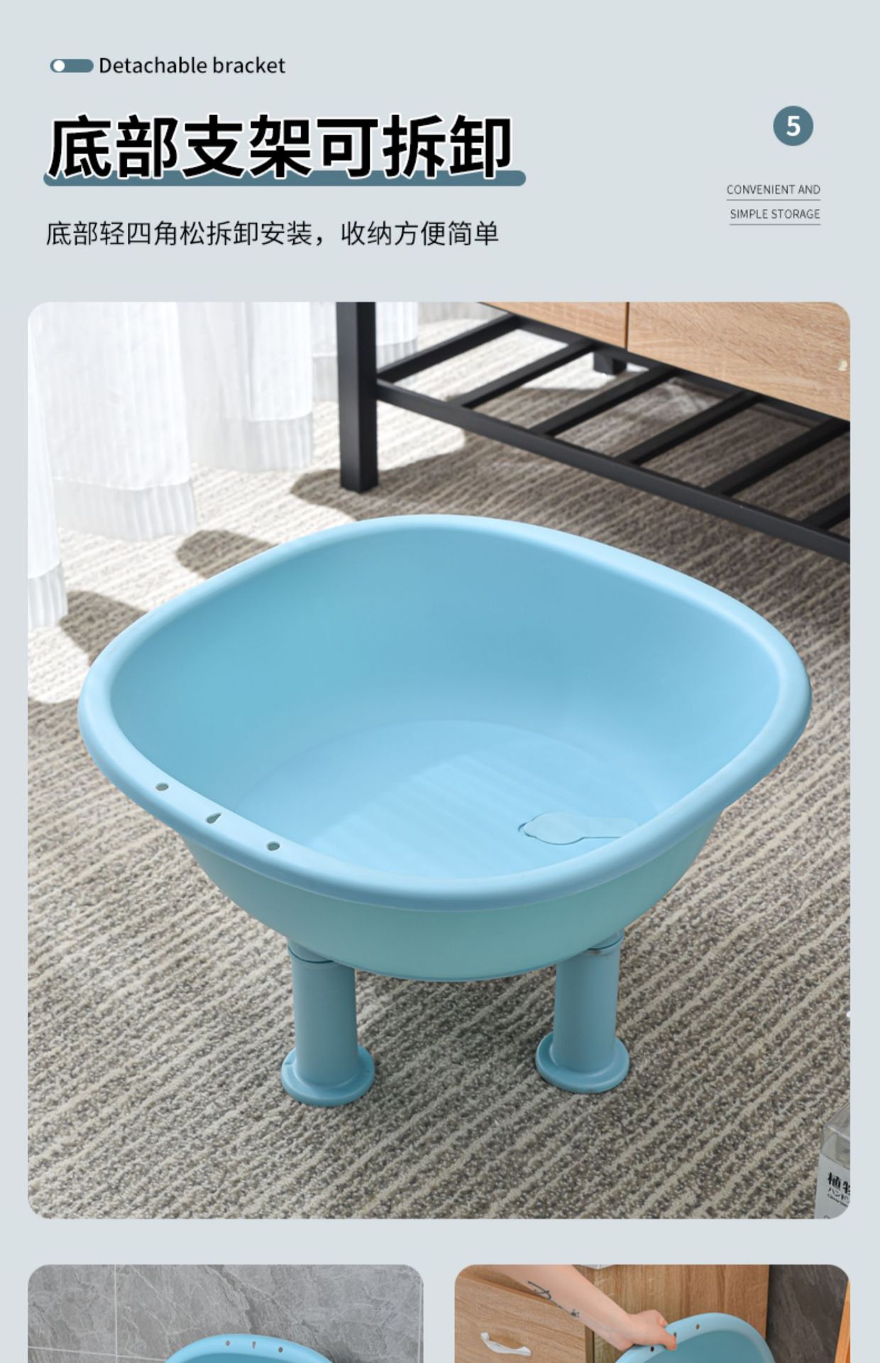 • 업그레이드된 두꺼운 대형 사이즈: 파란색 세탁대 + 두꺼운 발 + 배수관