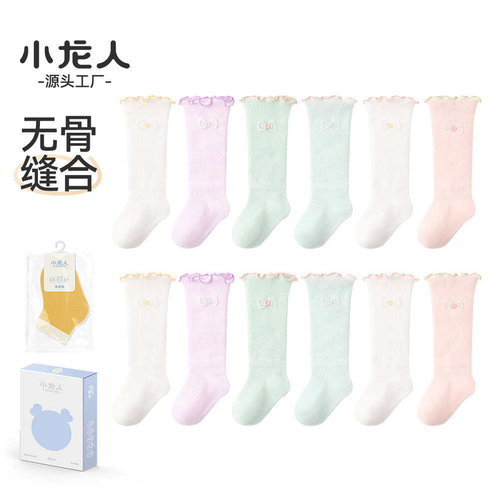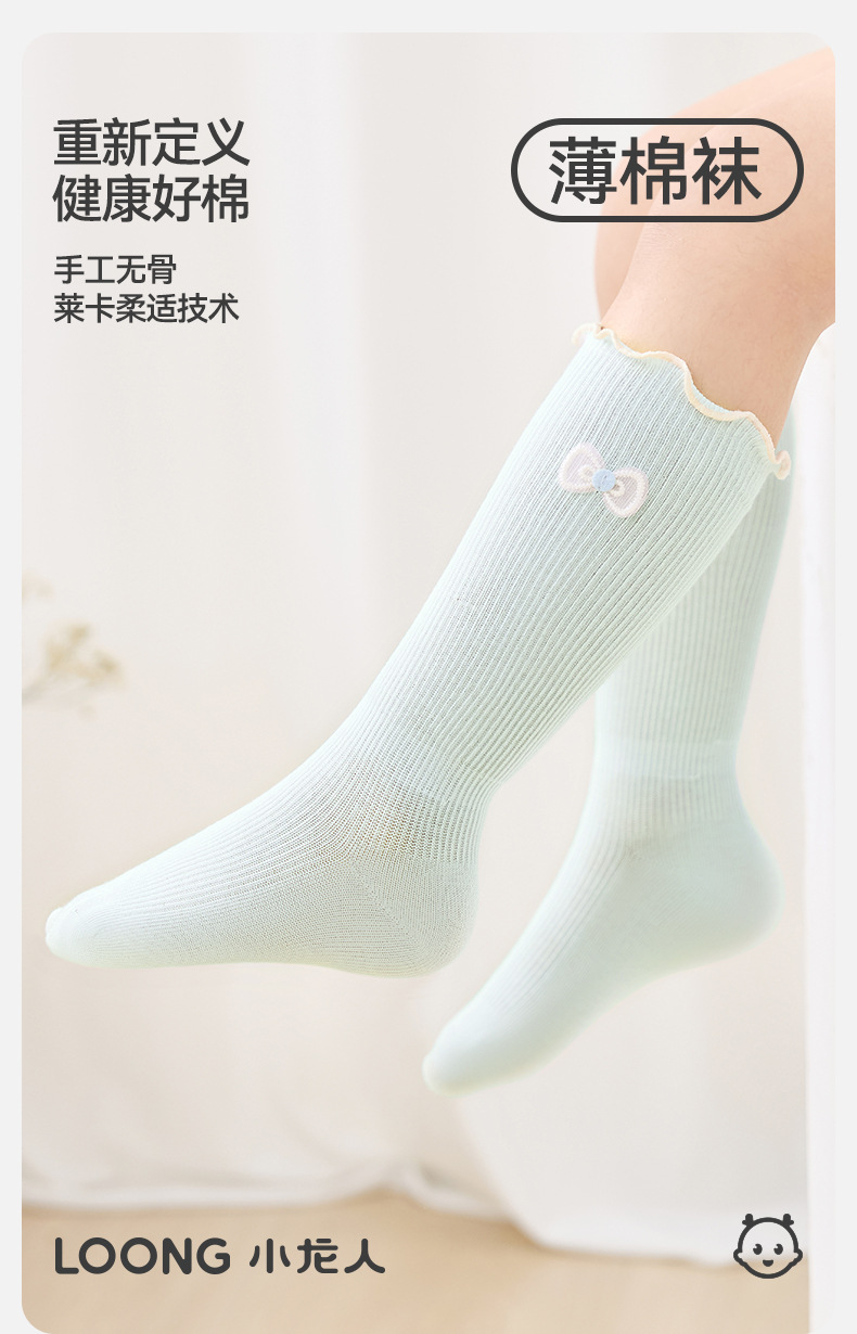 [실제 제품 전용] Xiaolongren 2025 봄 여름 아기 소녀 베이비 롱 튜브 어린이 양말 얇은 면 신생아 양말