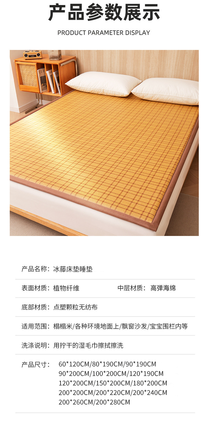 여름 매트 매트리스 여름 2024 새로운 등나무 매트 여름 바닥 잠자는 매트 두꺼운 얼음 실크 다다미 매트스토어 가기