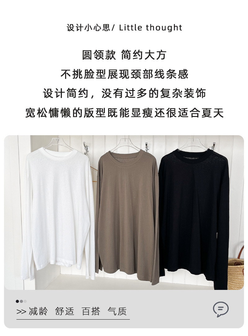 라운드 넥 기본 대형 에디션 의류 니트 베이스 긴 소매 탑 코튼 리넨 부드럽고 편안한 통기성 올 매치 티셔츠