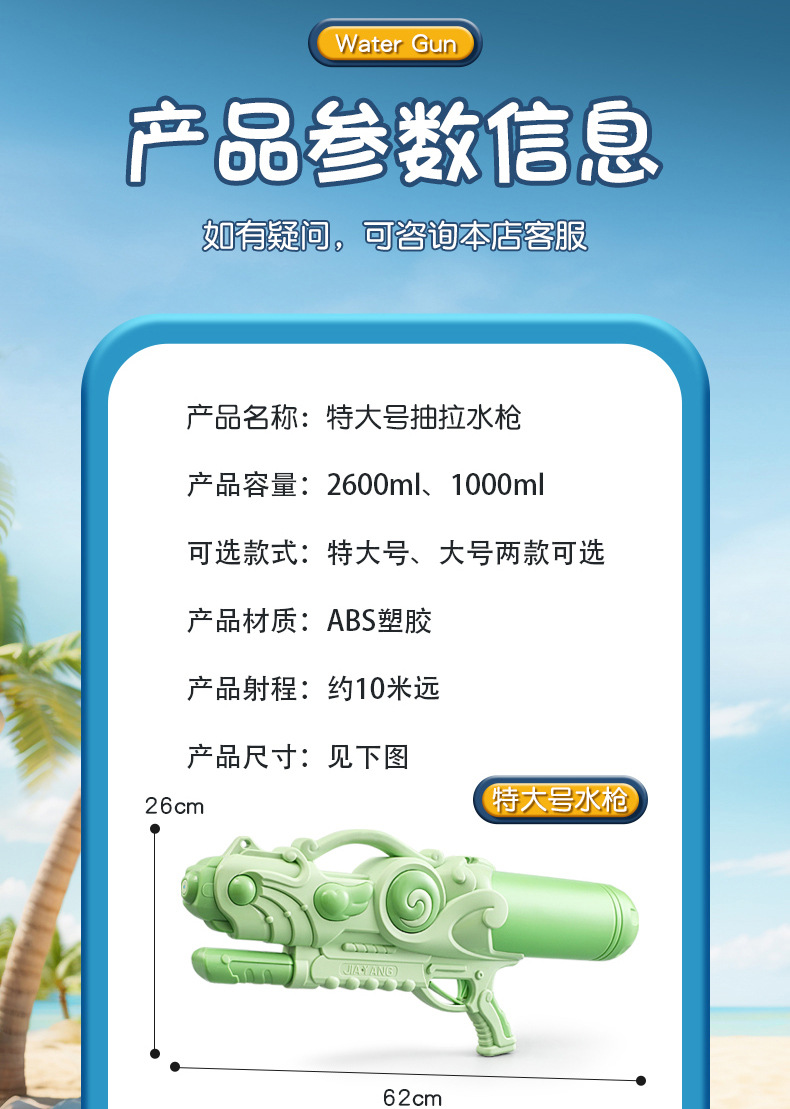 어린이 초대형 물총 장난감 여름 해변 물 놀이 장난감 물 싸움 대용량 물 총 표류 물 튀는 축제