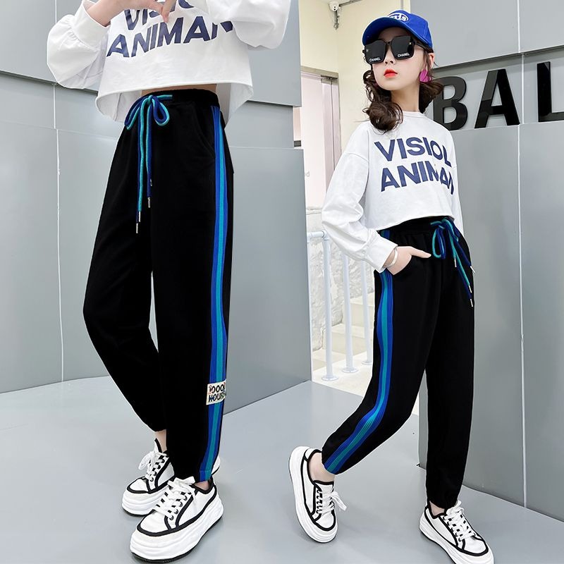봄과 가을 얇은 중대형 아동복 클라인 블루 스트라이프 캐주얼 스포츠 바지 올 매치 뉴 보이즈 스포츠 스웨트 팬츠