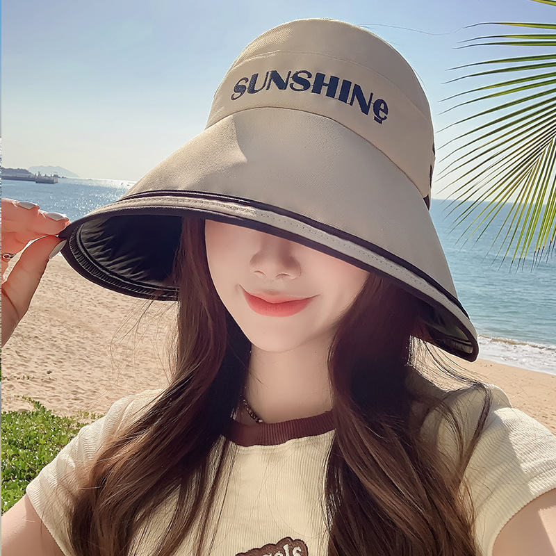 8171 봄과 여름 새 편지 줄무늬 검은 접착제 태양 보호 공기 탑 모자 패션 캐주얼 큰 브림 태양 모자