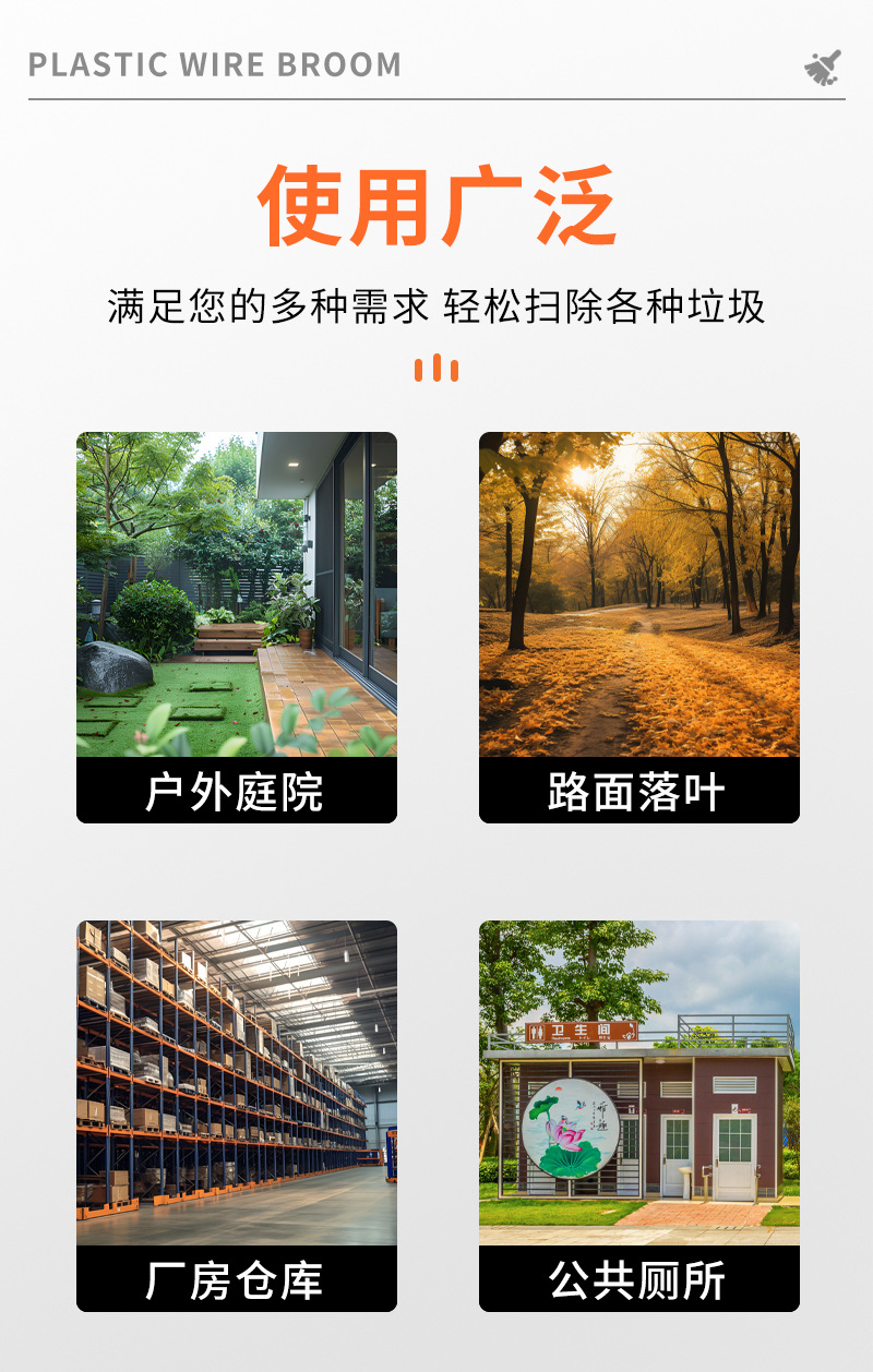 도매 빗자루 빗자루 정원 빗자루 안뜰 청소 위생 플라스틱 와이어 빗자루 도로 야외 청소스토어 가기