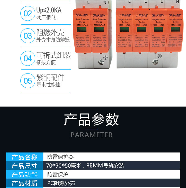 상하이 사람들의 번개 보호 서지 보호기 4P 전원 공급 장치 가정용 220V 번개 체포 2P 서지 모듈 스위치 광전지