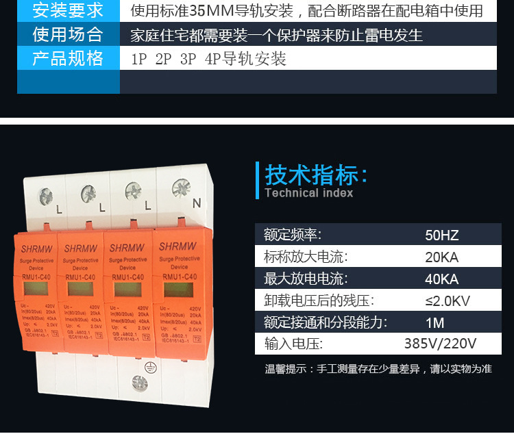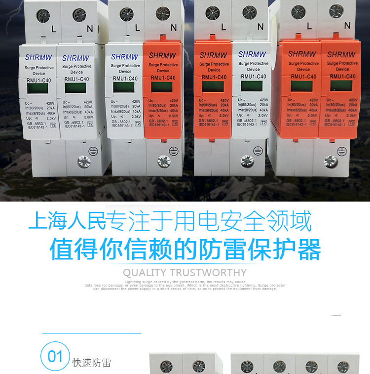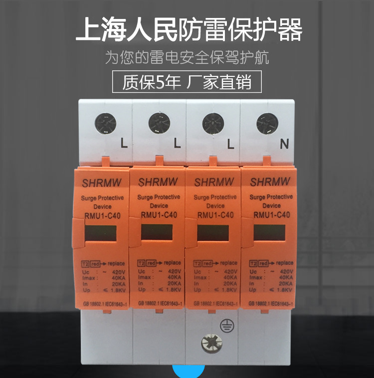 상하이 사람들의 번개 보호 서지 보호기 4P 전원 공급 장치 가정용 220V 번개 체포 2P 서지 모듈 스위치 광전지스토어 가기