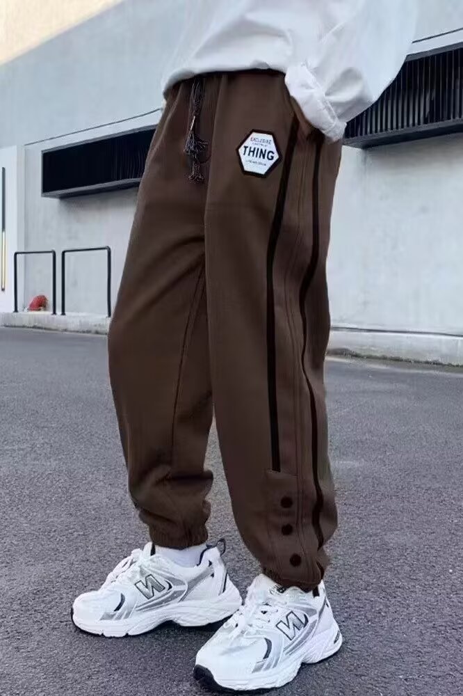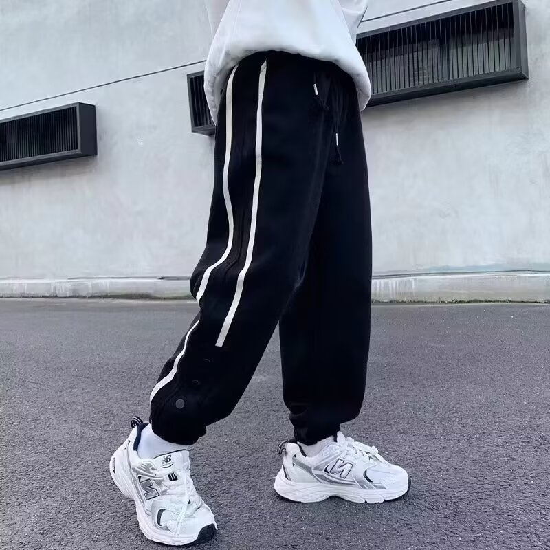 홍콩 스타일 올매치 캐주얼 바지 남자 루즈 스트레이트 캐주얼 바지 2025 소년 발목 묶은 바지 스포츠 발목 묶은 긴 바지