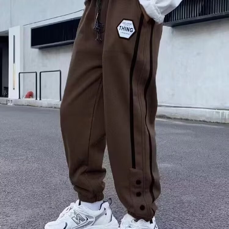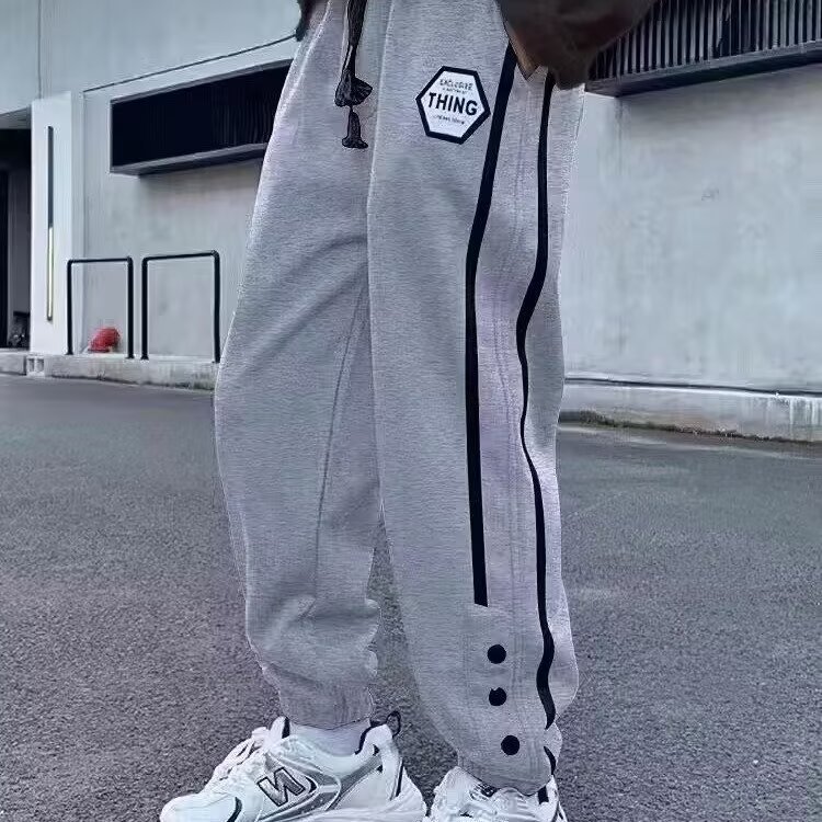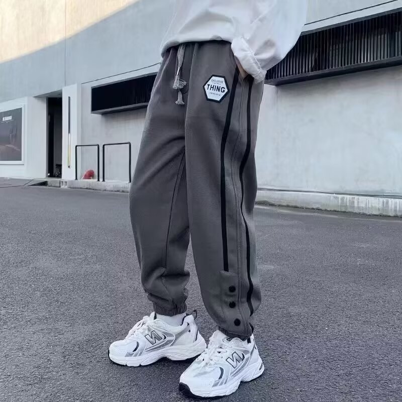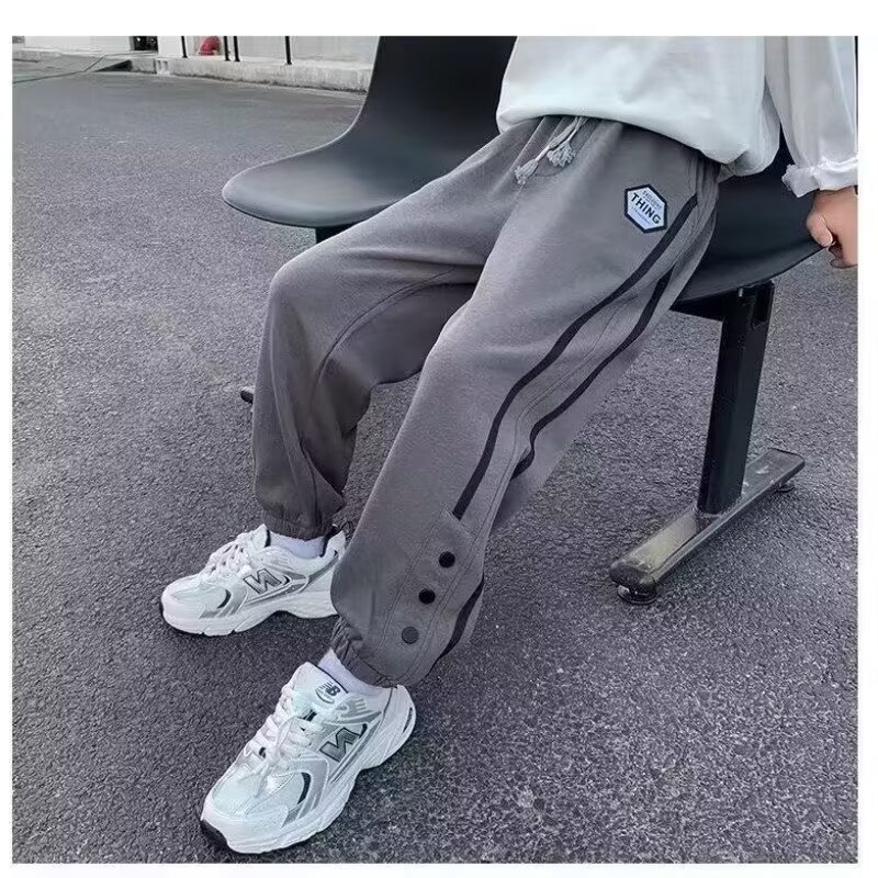 홍콩 스타일 올매치 캐주얼 바지 남자 루즈 스트레이트 캐주얼 바지 2025 소년 발목 묶은 바지 스포츠 발목 묶은 긴 바지스토어 가기