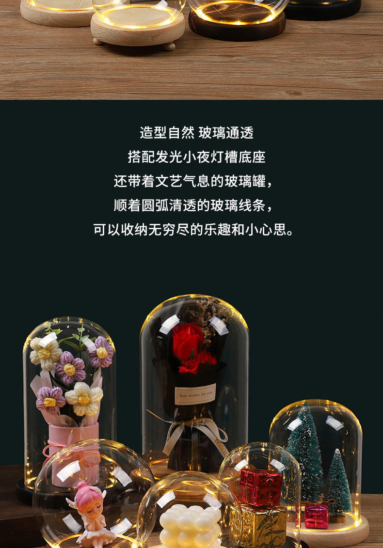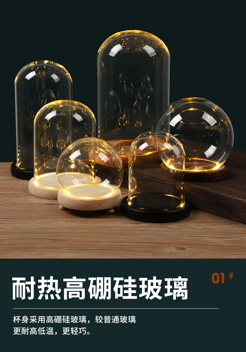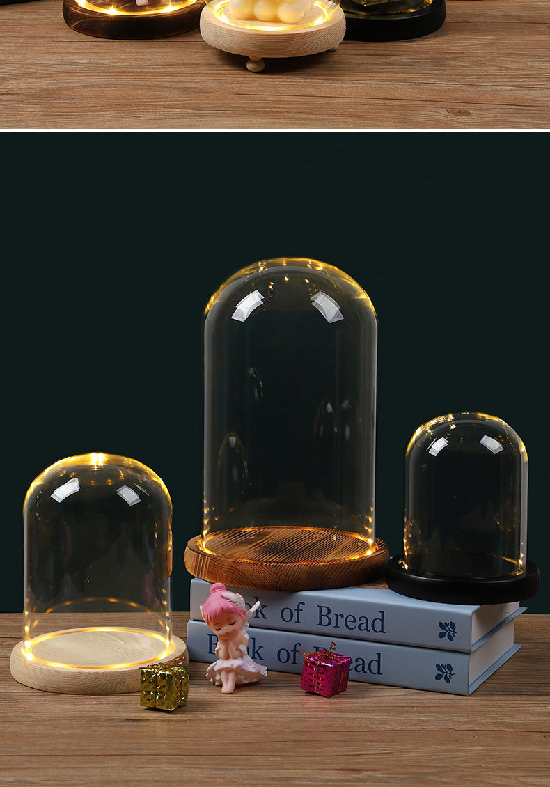 둥근 구형 영원한 꽃 말린 꽃 유리 커버 라이트 박스 먼지 커버 손으로 만든 유리 커버