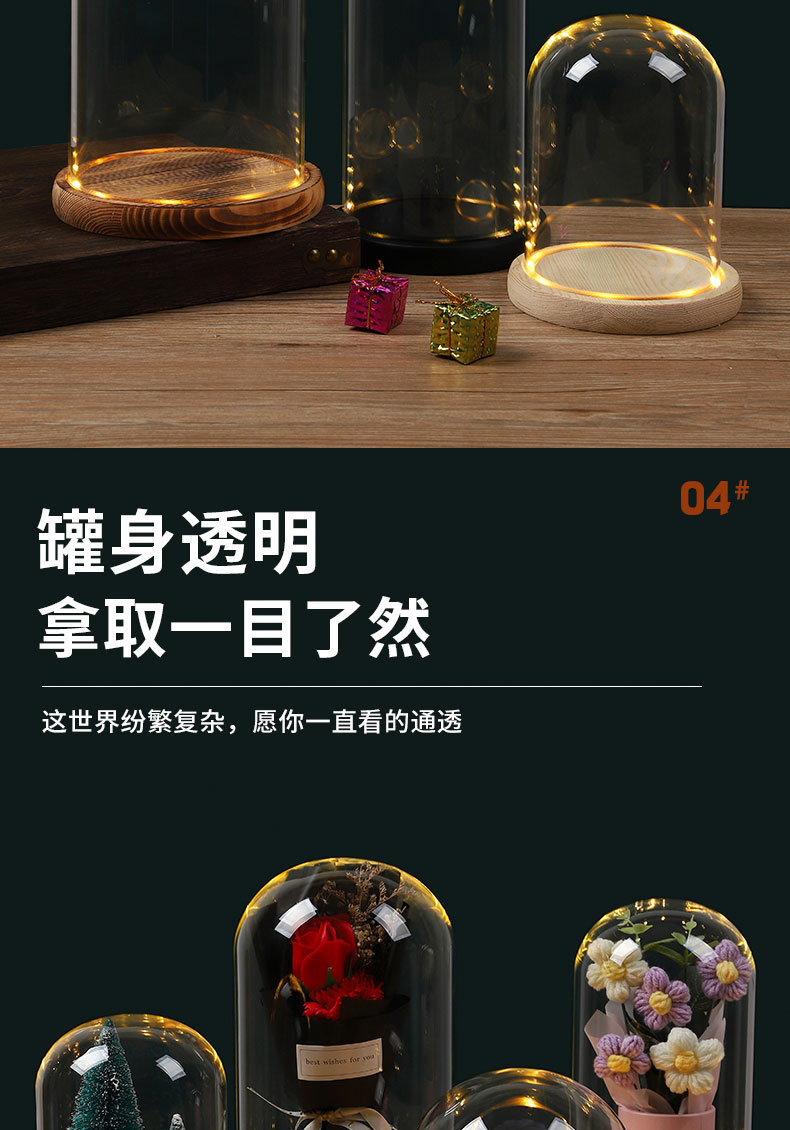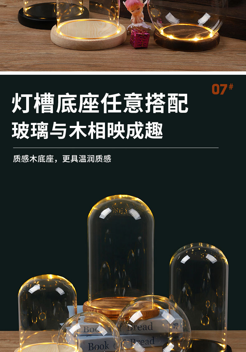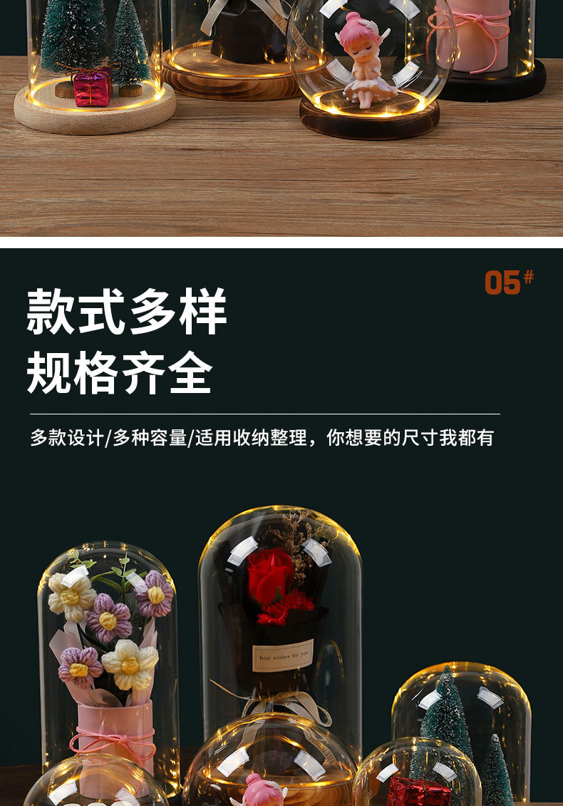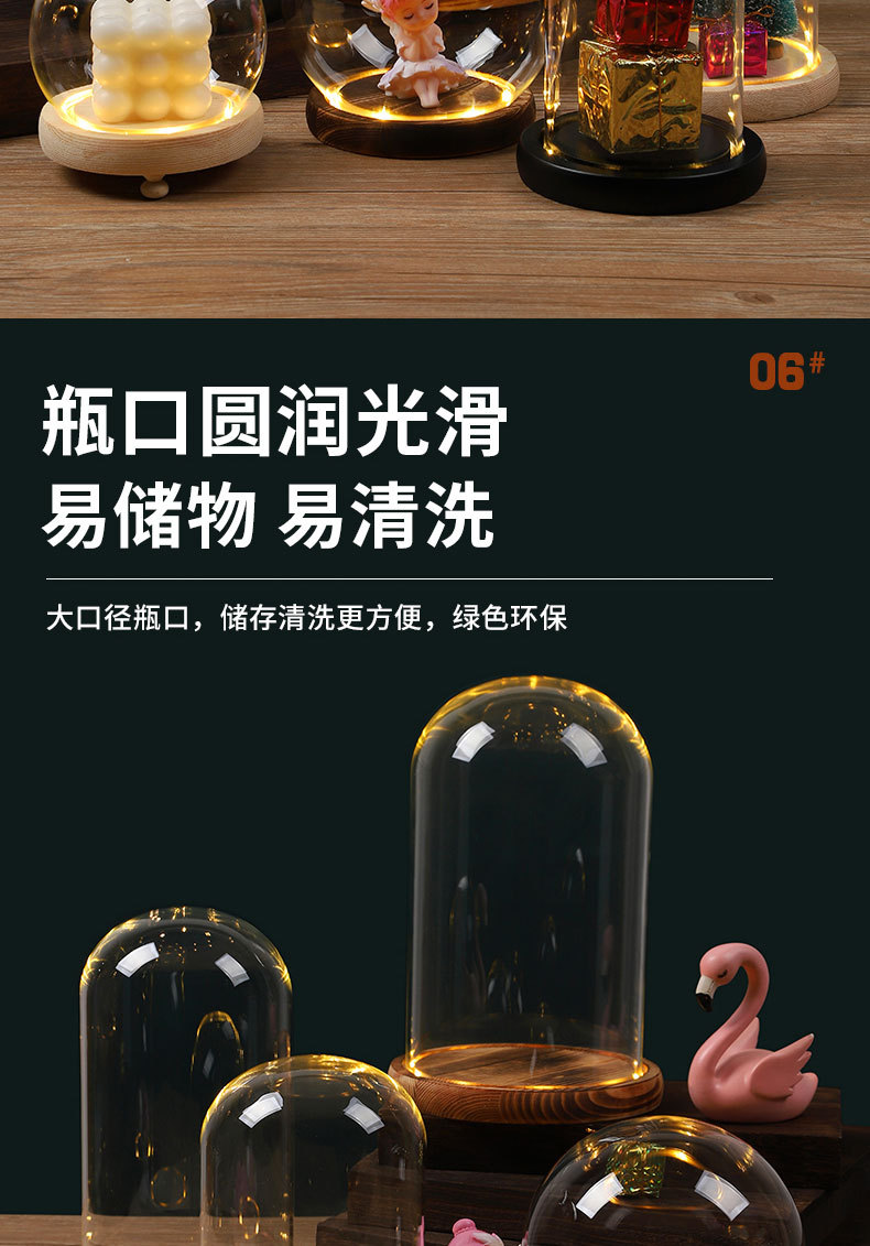 둥근 구형 영원한 꽃 말린 꽃 유리 커버 라이트 박스 먼지 커버 손으로 만든 유리 커버