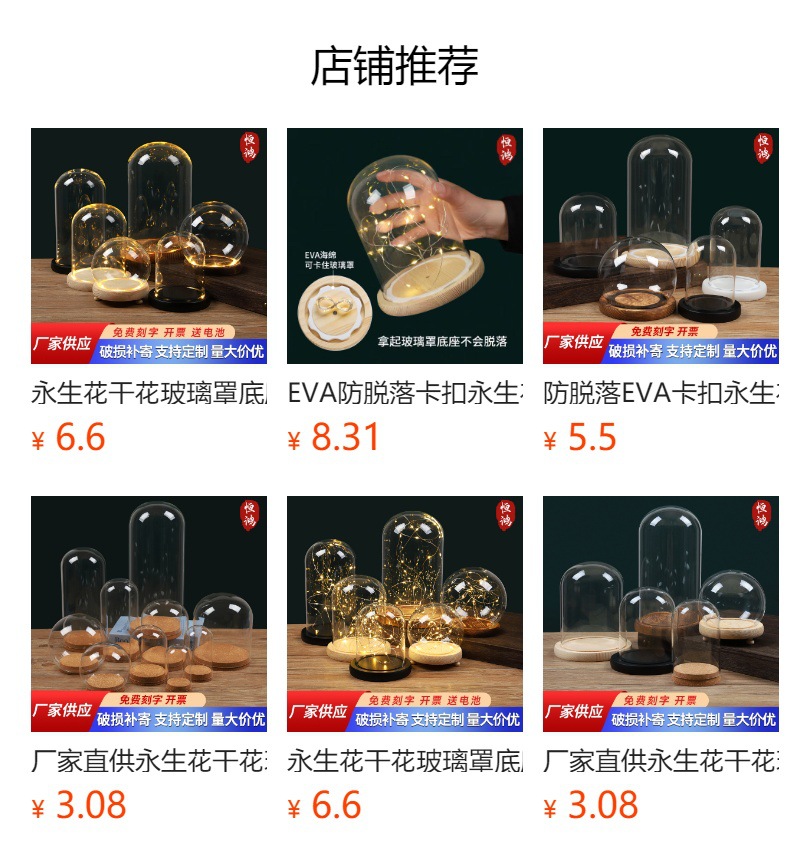 둥근 구형 영원한 꽃 말린 꽃 유리 커버 라이트 박스 먼지 커버 손으로 만든 유리 커버스토어 가기