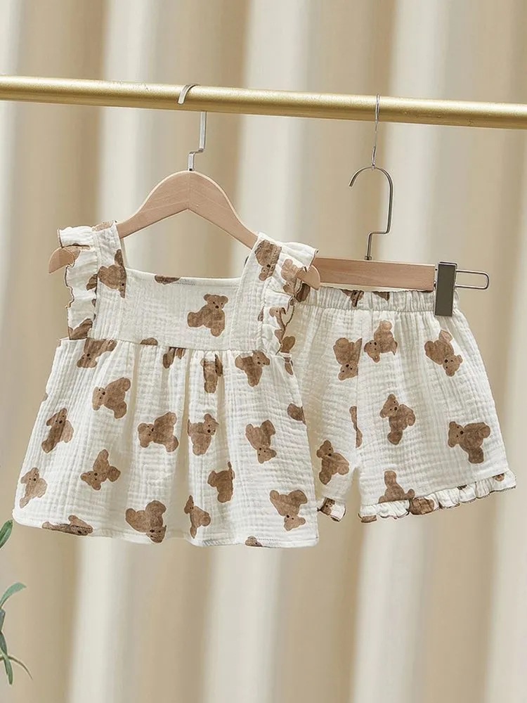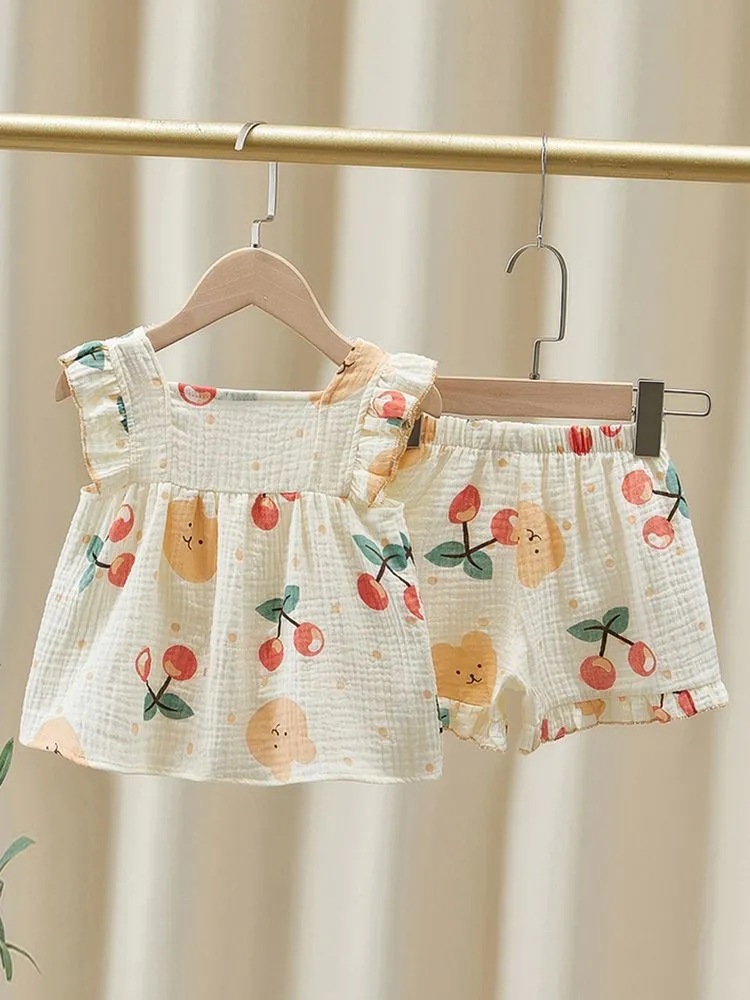잠옷 슬링 어린 소녀 여름 얇은 소녀 달콤한 체리 베어 외국식 어린이 세트 홈 세트