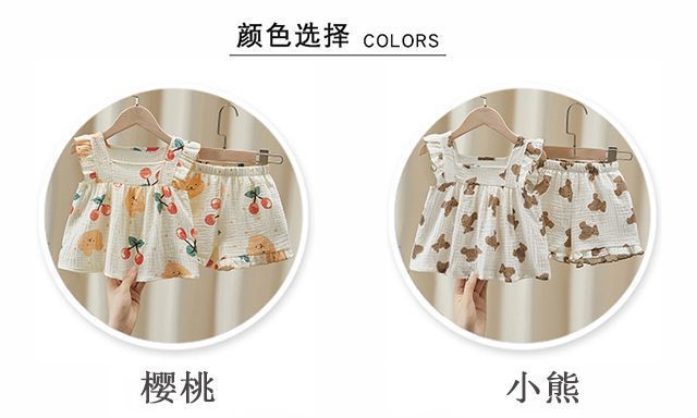 잠옷 슬링 어린 소녀 여름 얇은 소녀 달콤한 체리 베어 외국식 어린이 세트 홈 세트스토어 가기