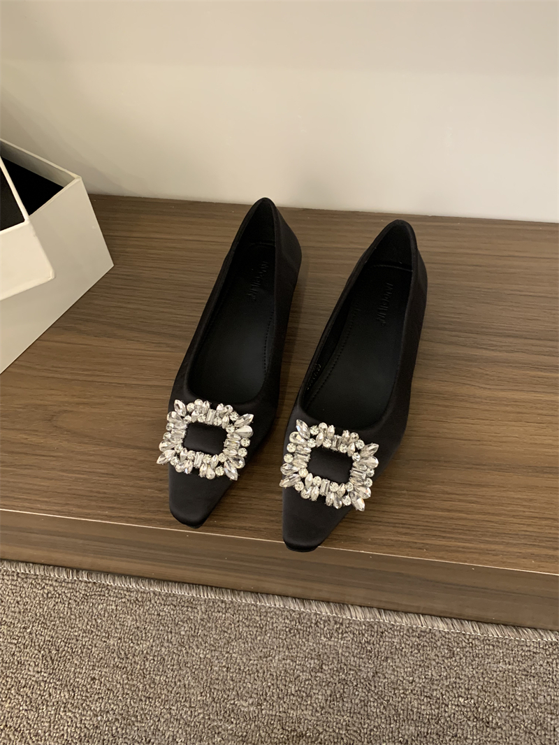 프랑스 뾰족한 발가락 싱글 레이어 신발 여성용 청키 힐 2025 새로운 봄과 가을 샤넬 스타일 원피스 부드러운 바닥 얕은 입 우아한 펌프 봄스토어 가기