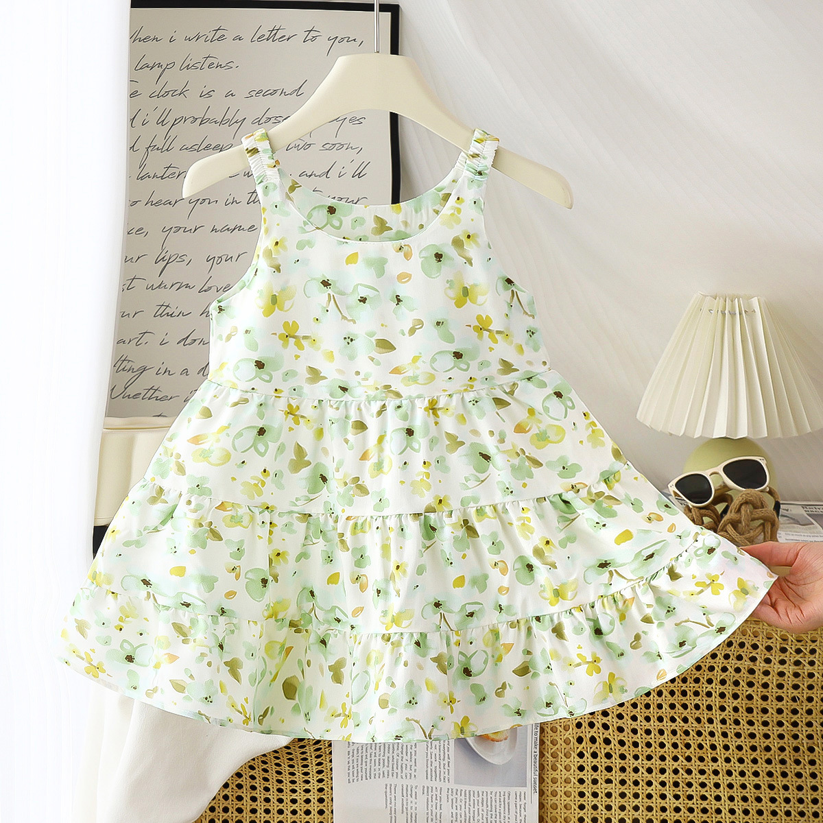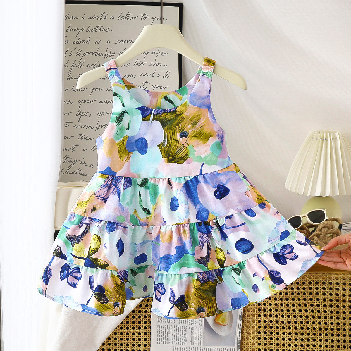 어린이 여름 새 여아 원피스 홀리데이 스타일 한국 공주 원피스 어린이 면 실크 원피스 꽃 슬립 원피스
