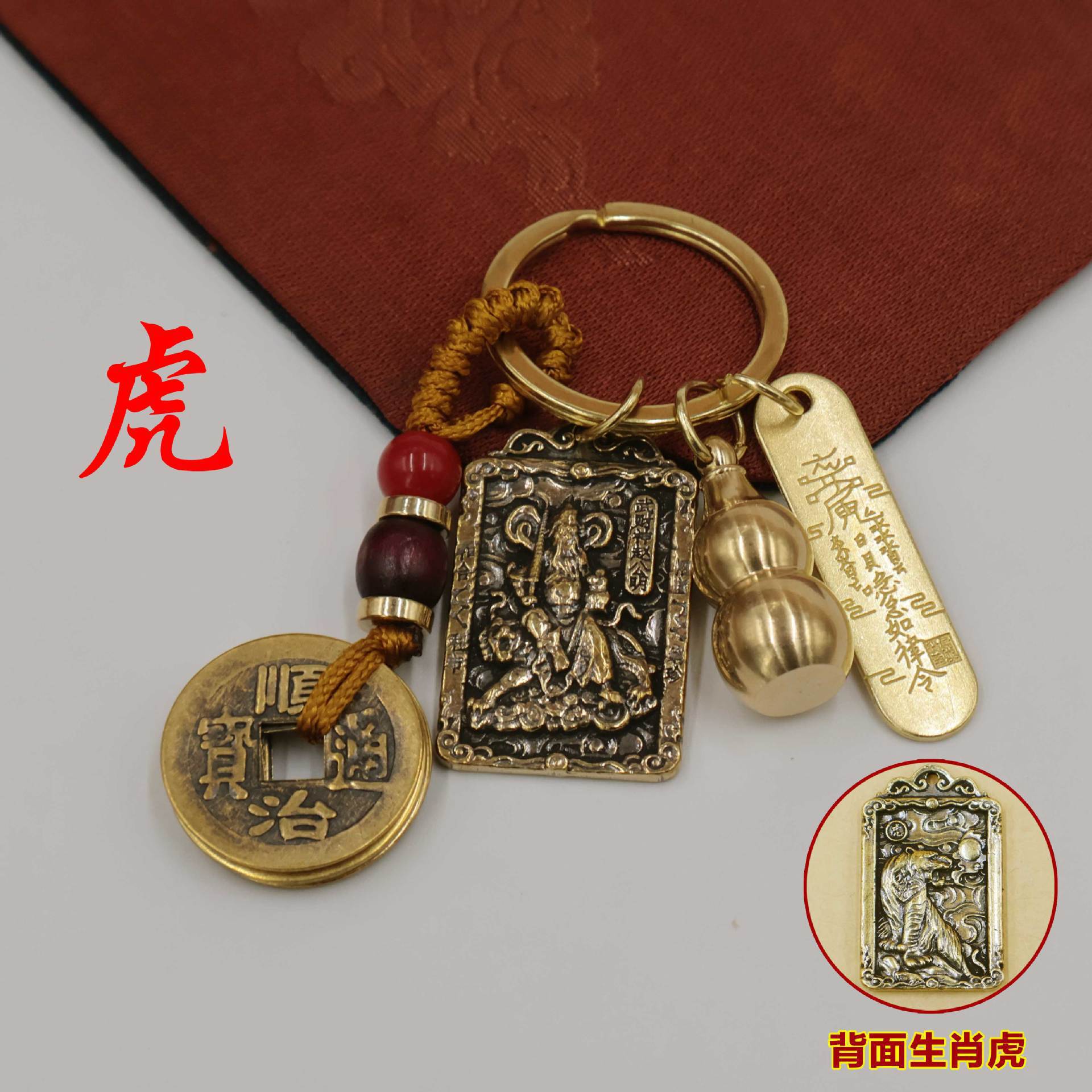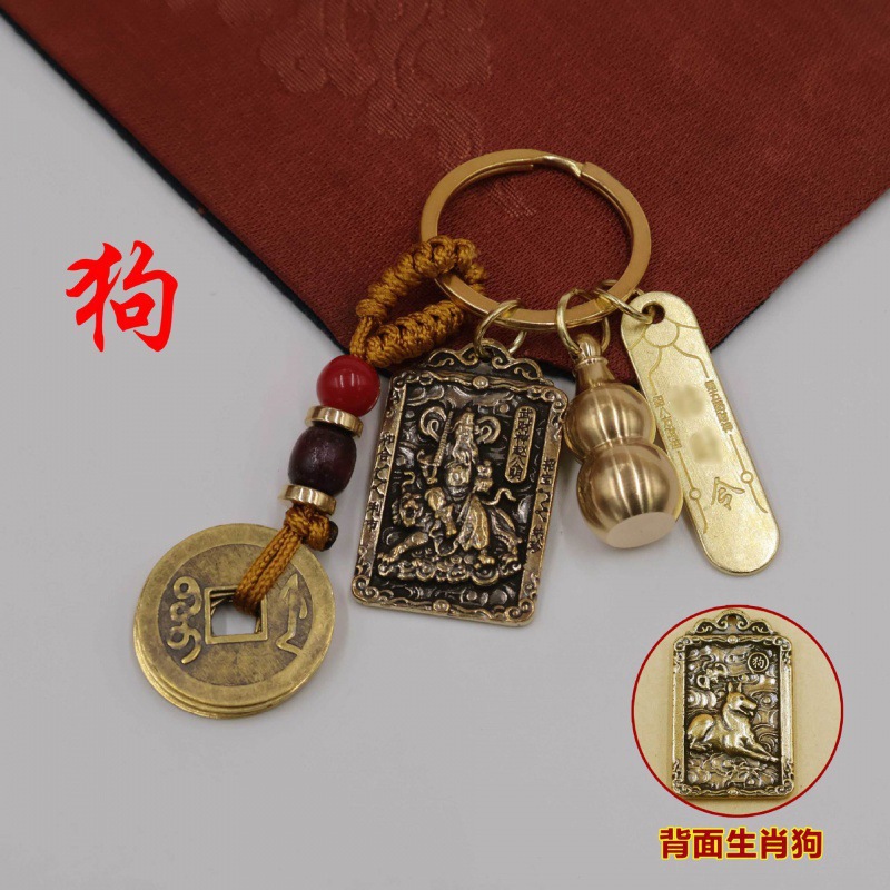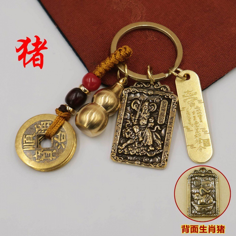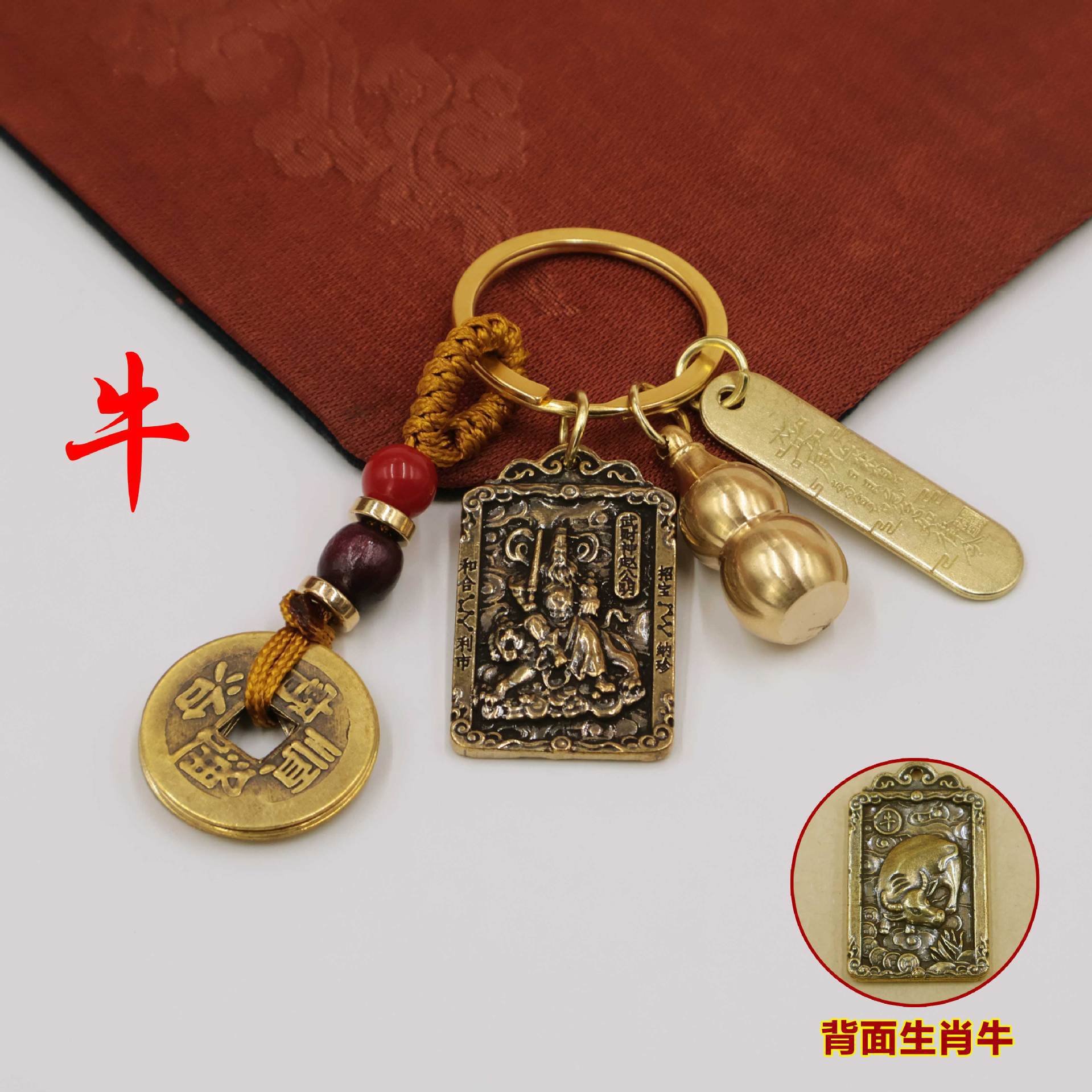 황동은 부의 신 Zhao Gongming Zodiac Keychain Lucky Order 펜던트 Wu God of Wealth Five Way God of Wealth Pendant스토어 가기