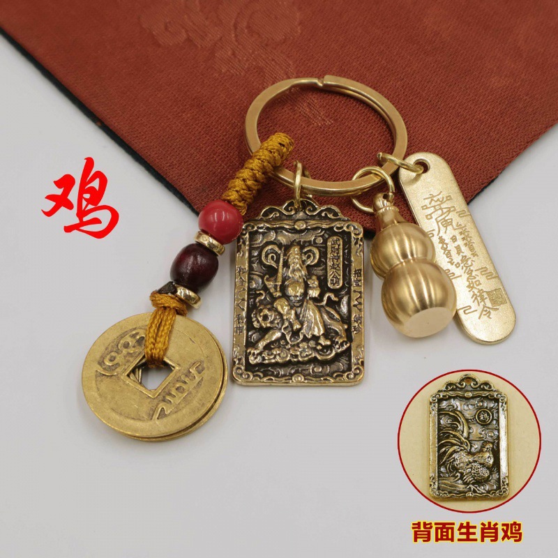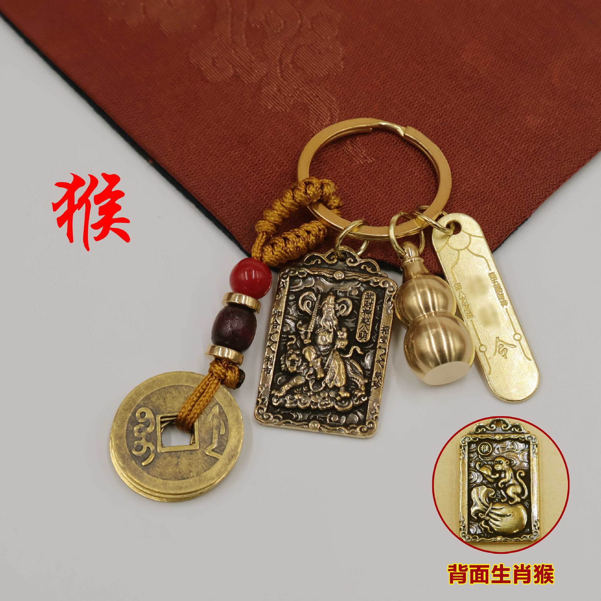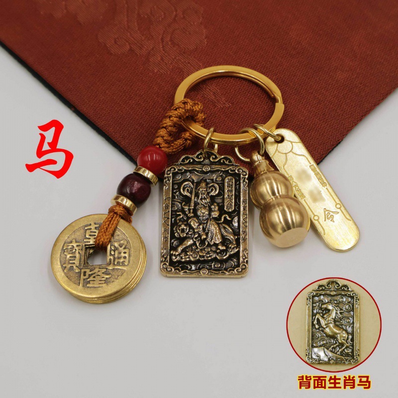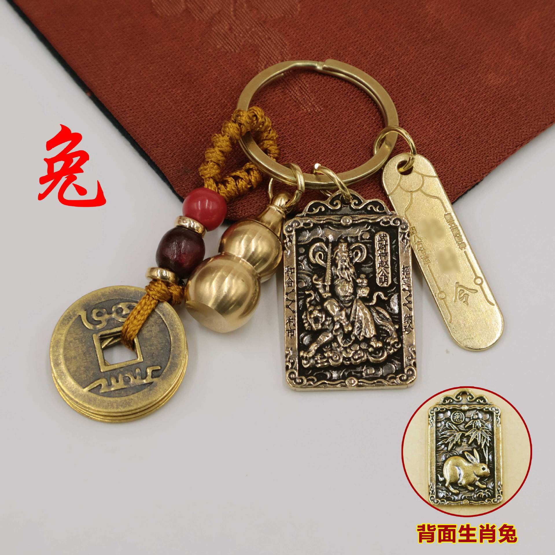 황동은 부의 신 Zhao Gongming Zodiac Keychain Lucky Order 펜던트 Wu God of Wealth Five Way God of Wealth Pendant스토어 가기