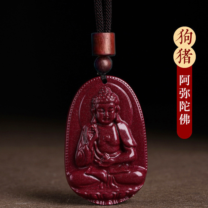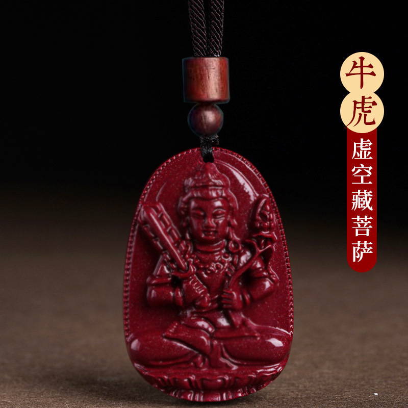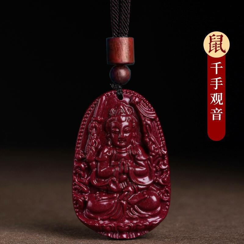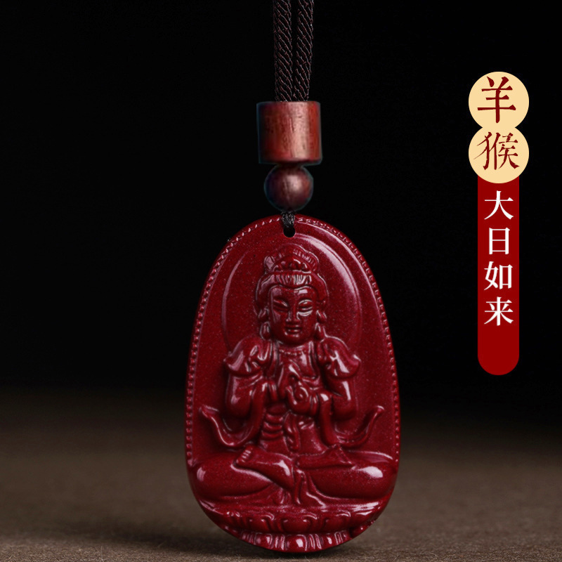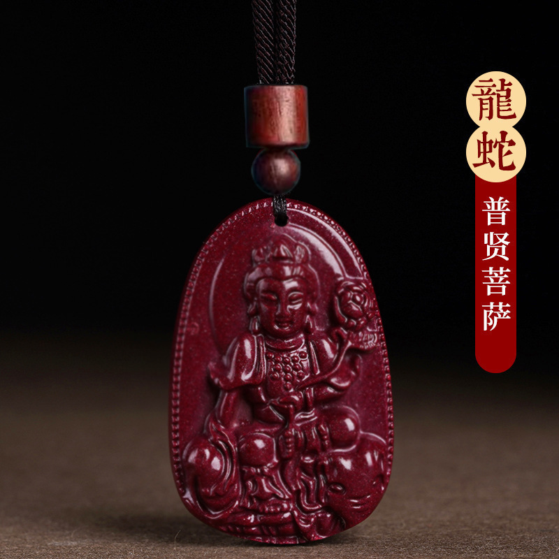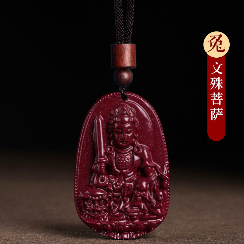 마스터 추천 천연 Cinnabar Benmingfo 펜던트 Puxian Vanity 숨기기 보살토끼 년 Manjusri 조디악스토어 가기