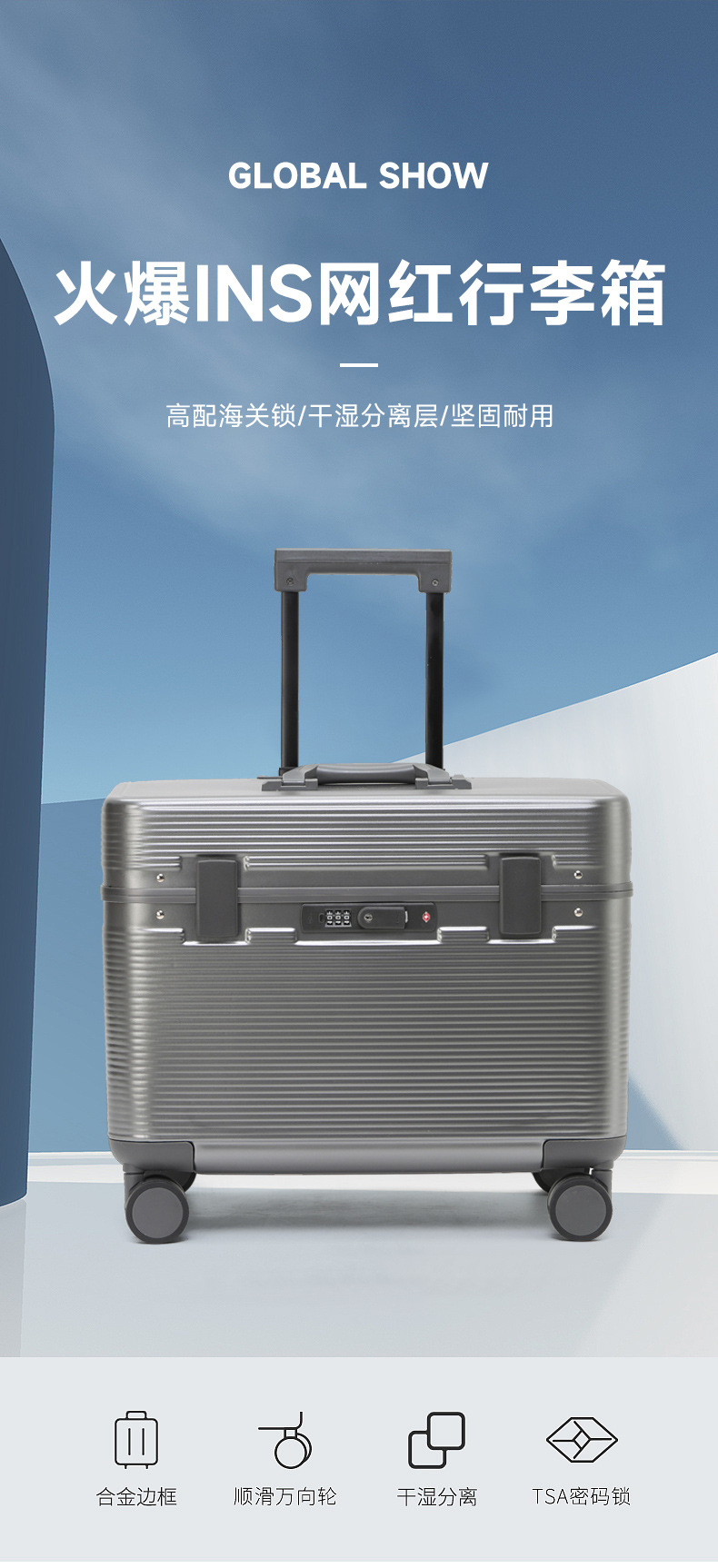 새로운 캡틴 케이스 플립 작은 알루미늄 프레임 사진 트롤리 케이스 18 인치 수평 22 인치 수하물 케이스 남녀 23 인치스토어 가기