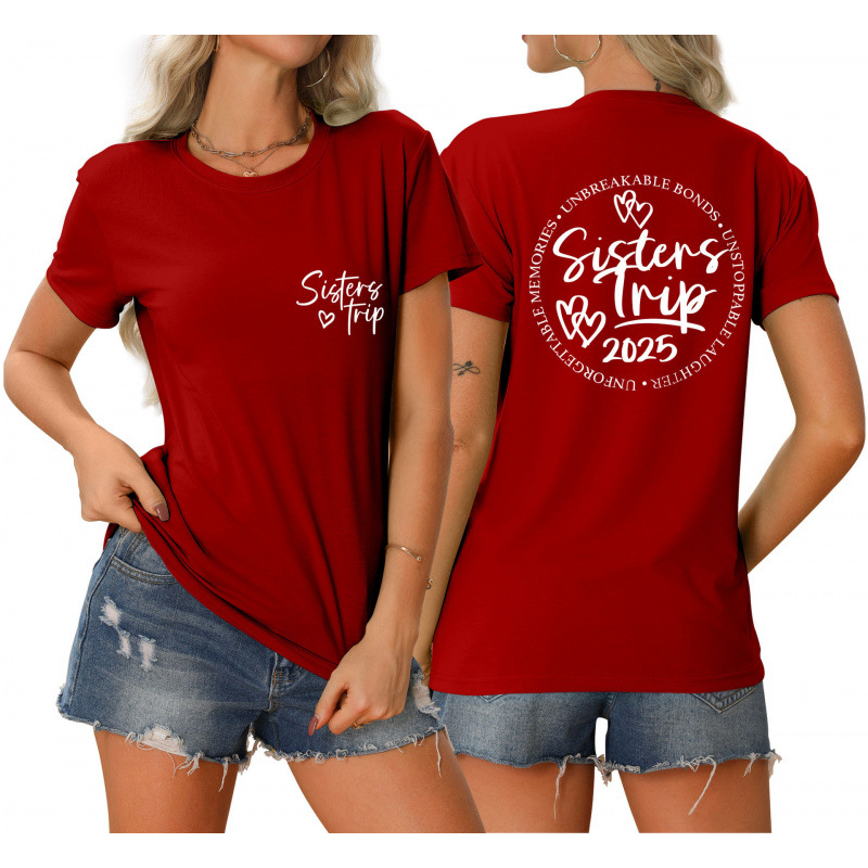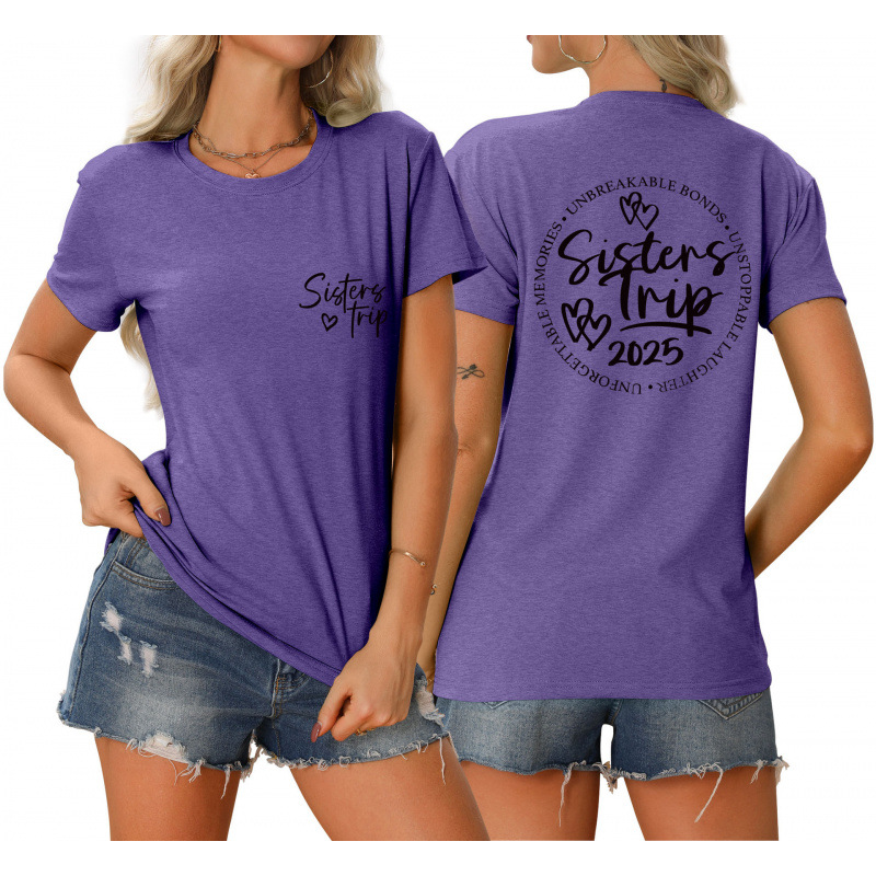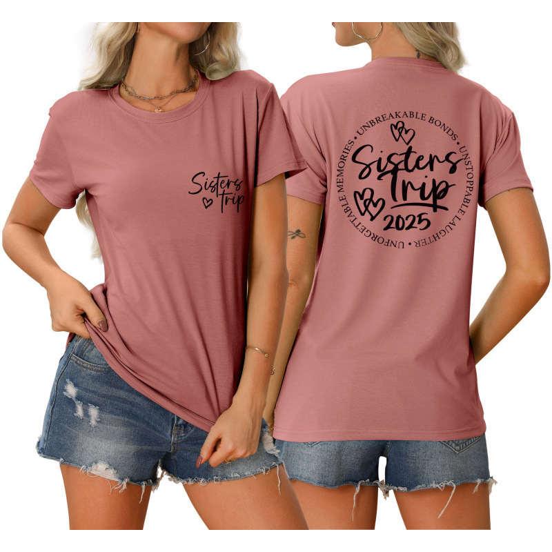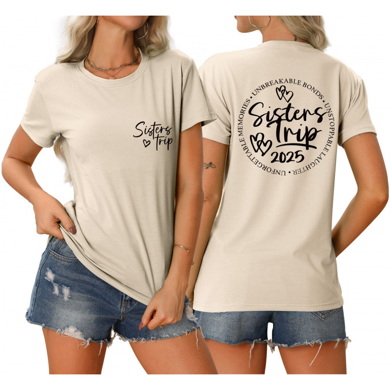 유럽과 미국의 eBay 편안한 티셔츠 깨지지 않는 채권 자매 여행 느슨한 트렌드 짧은 소매스토어 가기
