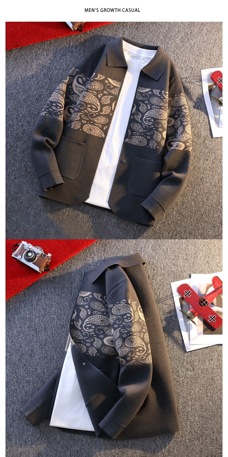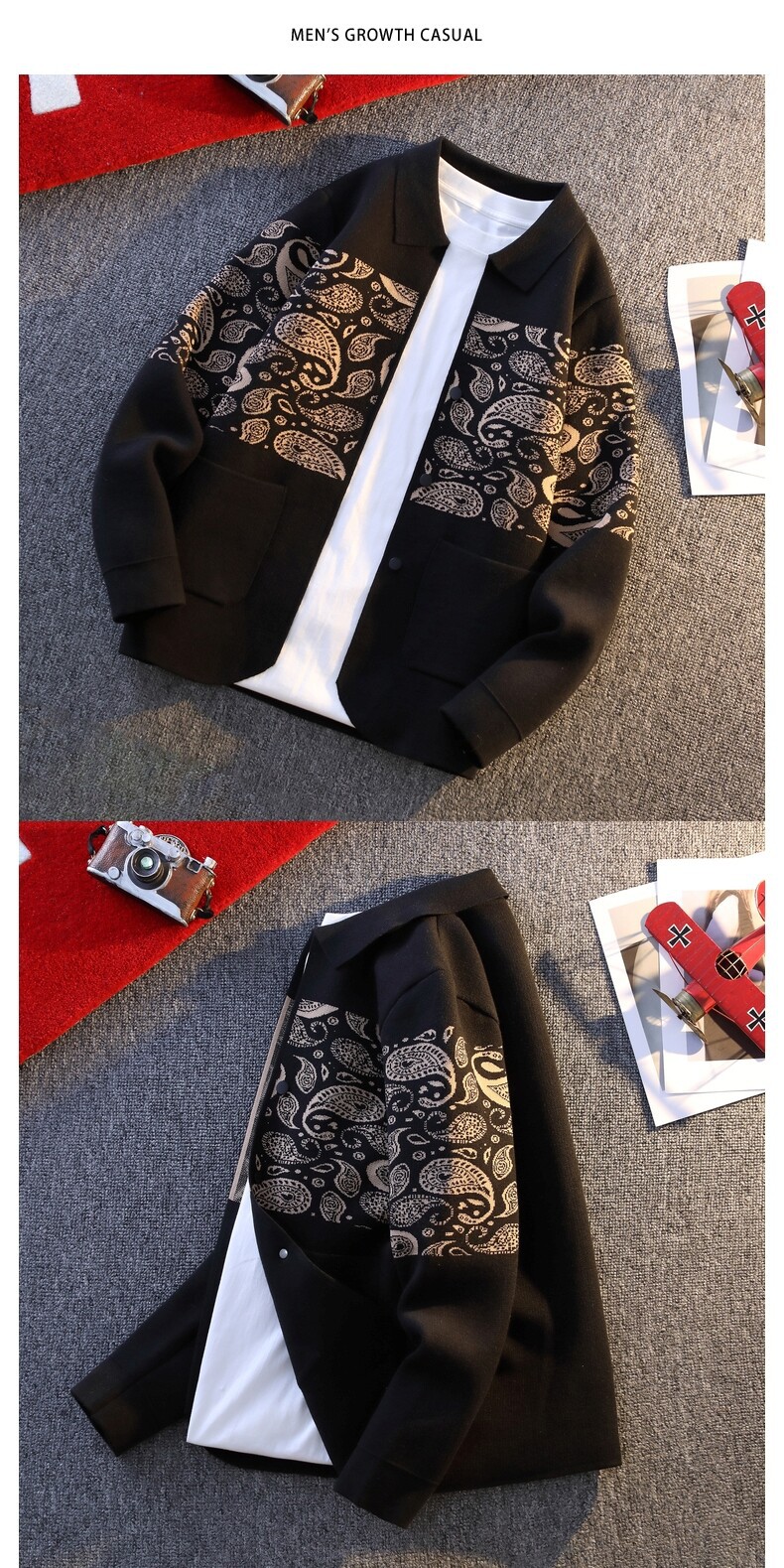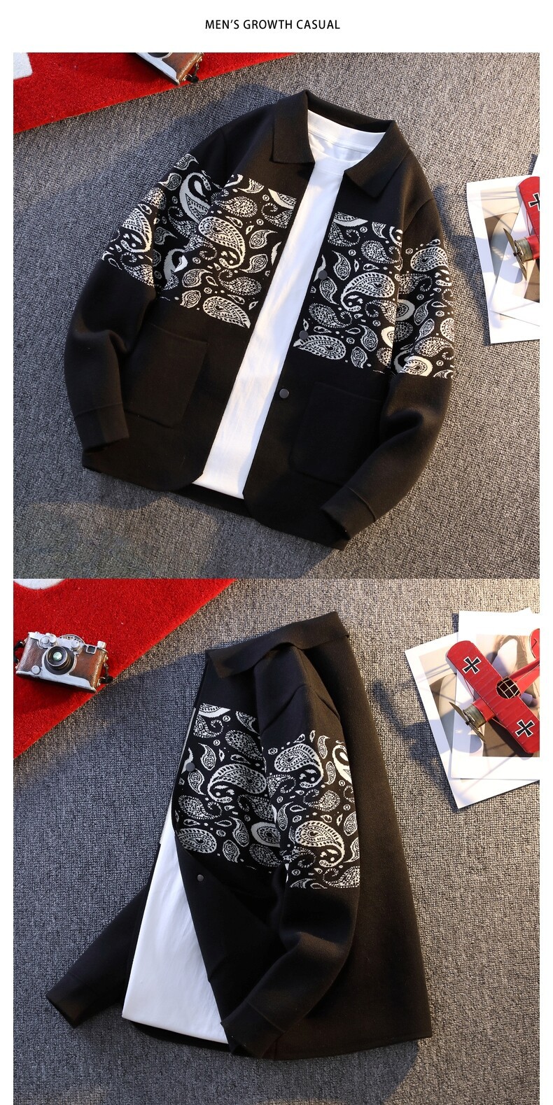 2025 봄과 가을 새로운 남성 랩 카디건 유행 캐주얼 스웨터 니트웨어 남성 탑 의류 맞춤형 재킷스토어 가기